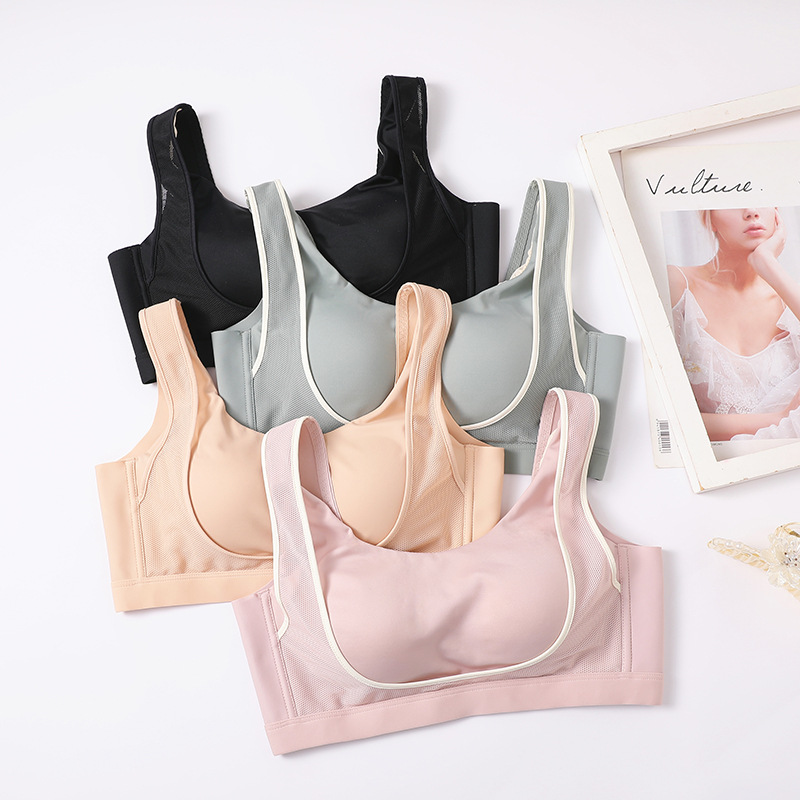 裸感瑜伽背心式运动内衣女无钢圈乳胶固定杯聚拢健身防震跑步文胸