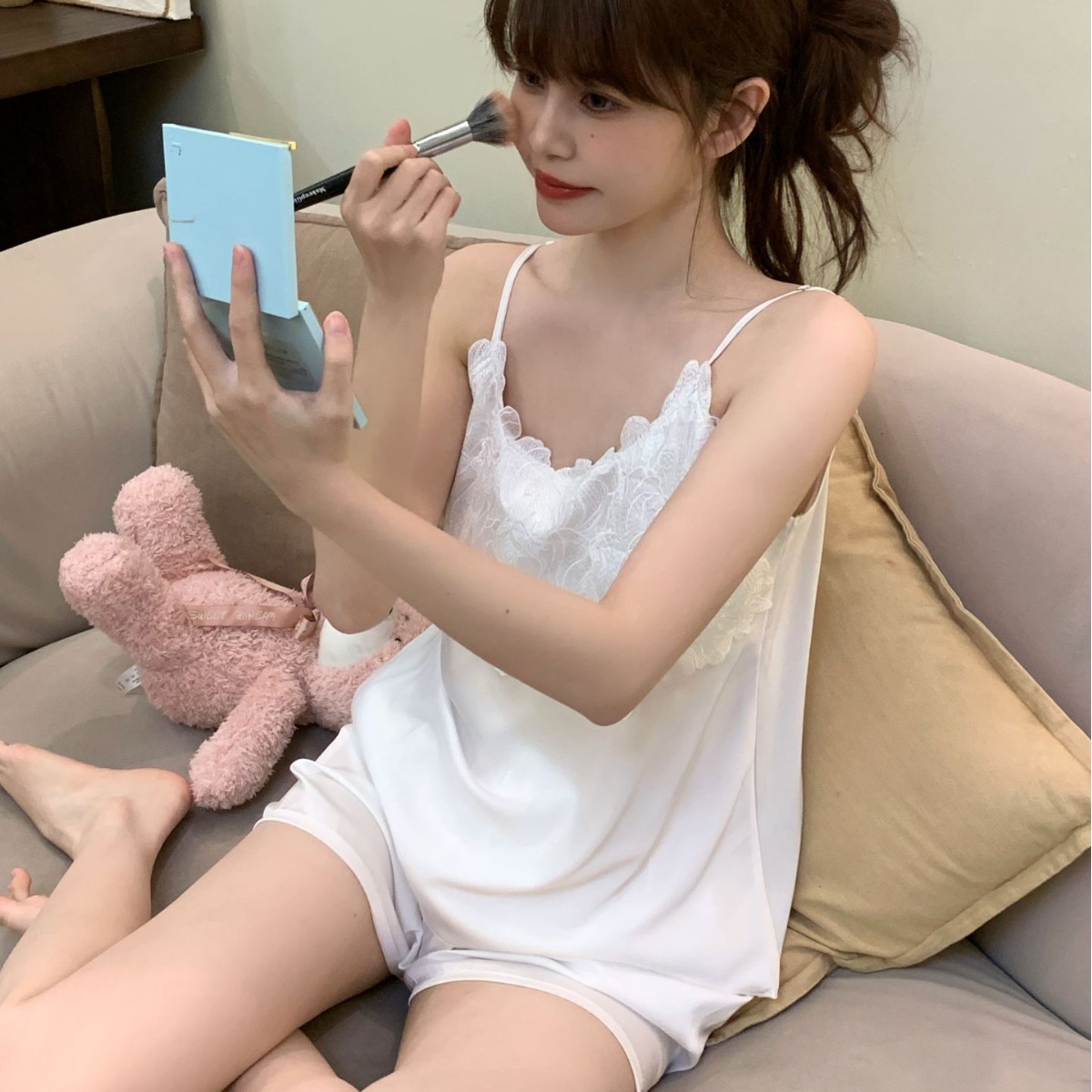冰丝睡衣女夏季少女纯欲吊带短裤家居服套装睡衣女粉嫩性感睡衣