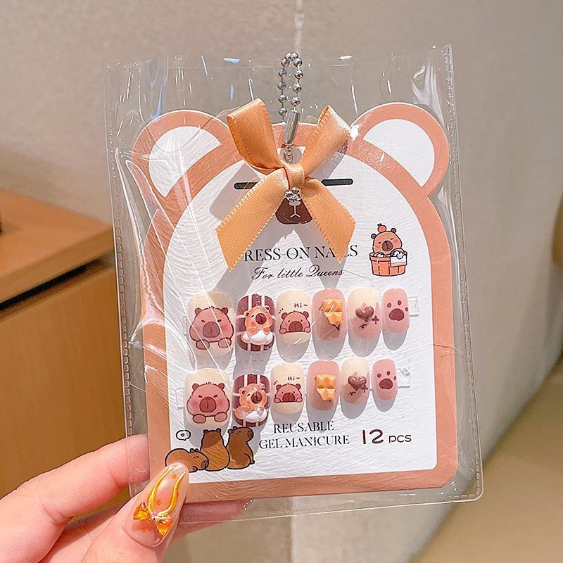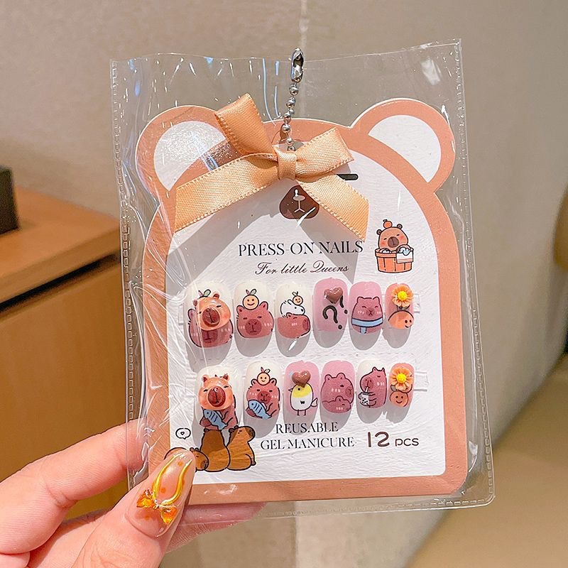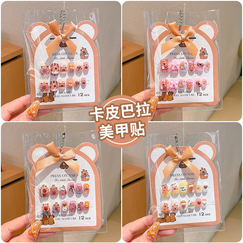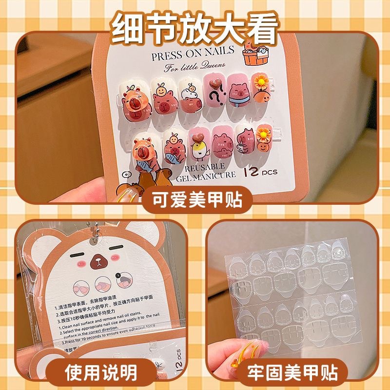 卡皮巴拉儿童指甲贴小女孩卡通穿戴甲片2025新款女童可拆卸美甲贴