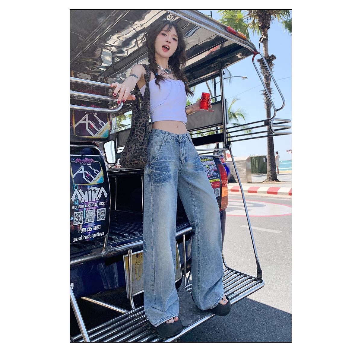 美式复古辣妹低腰垂感百搭喇叭直筒牛仔裤女水痕2025春夏季新款