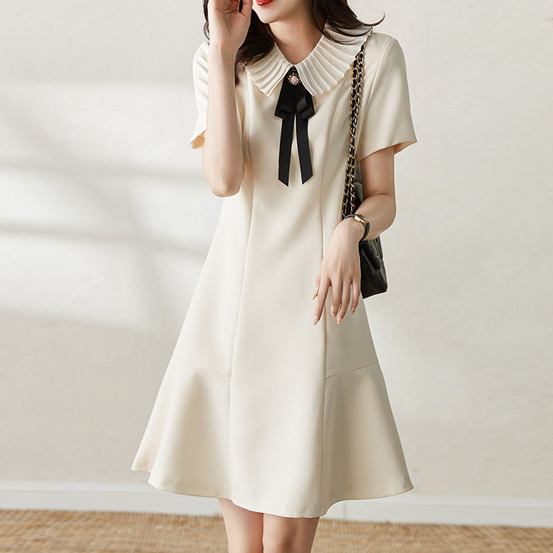 娃娃领短袖连衣裙女装夏季新款淑女荷叶边裙修身纯色鱼尾裙子