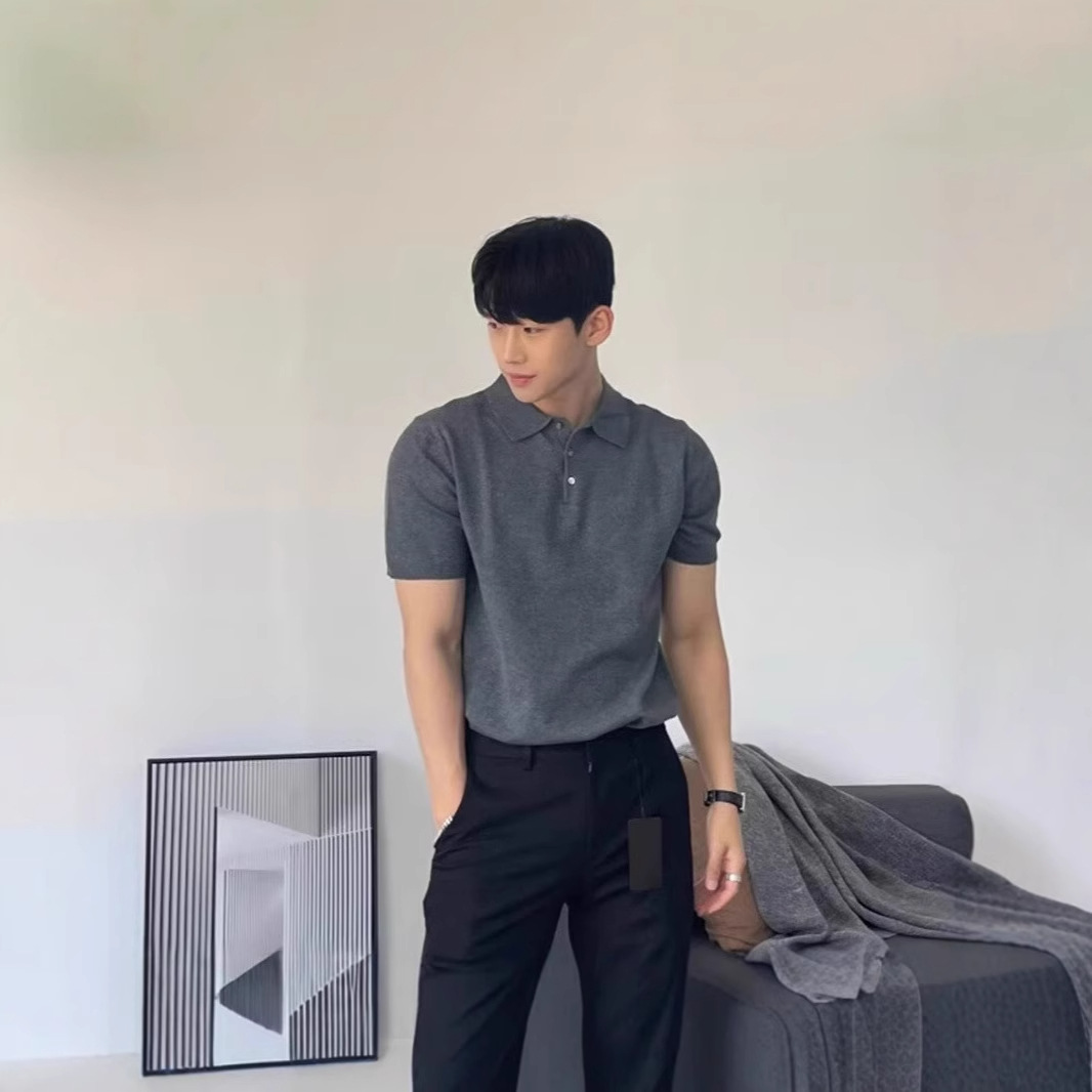 男士短袖t恤polo衫夏季潮牌纯色针织轻熟风男装商务通勤翻领上衣
