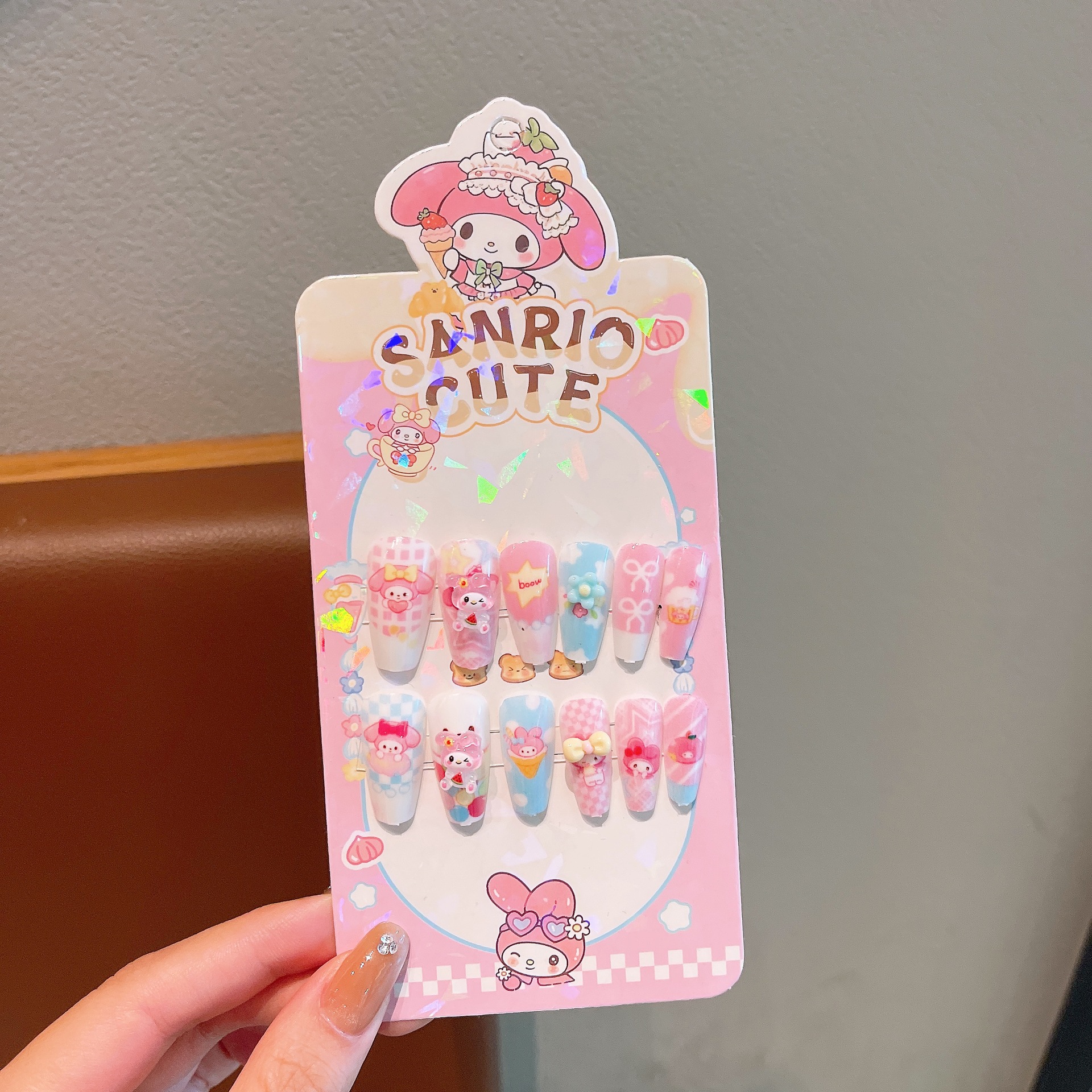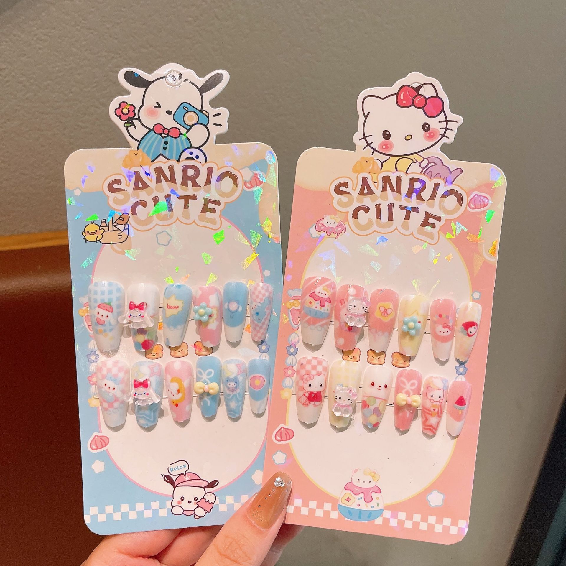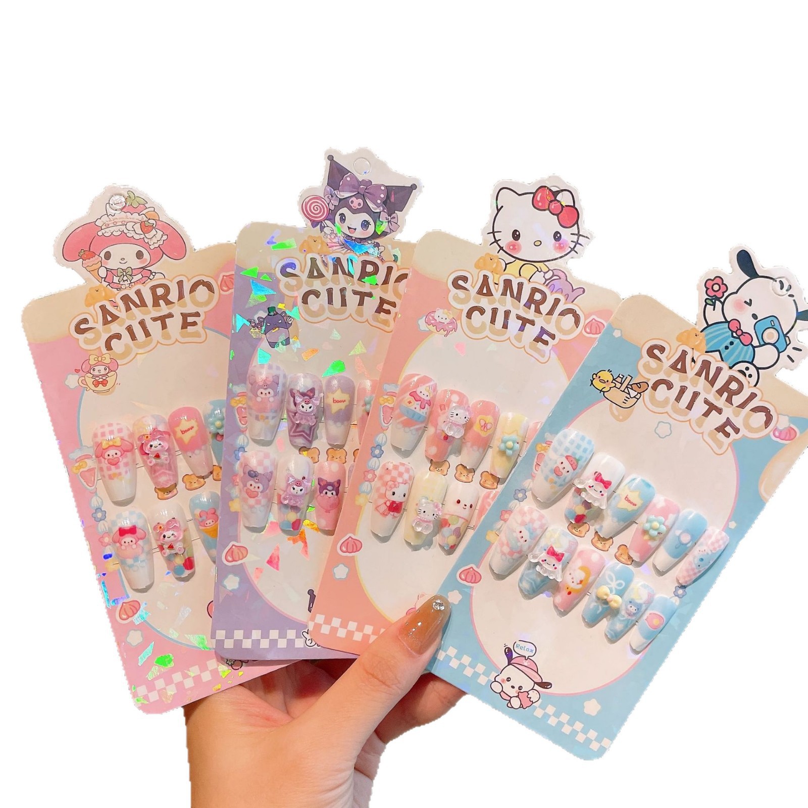 库洛米儿童长款可拆卸穿戴甲片女童美甲贴卡通指甲贴小公主贴纸