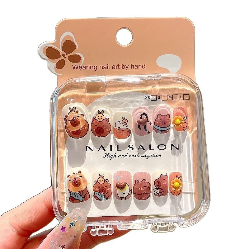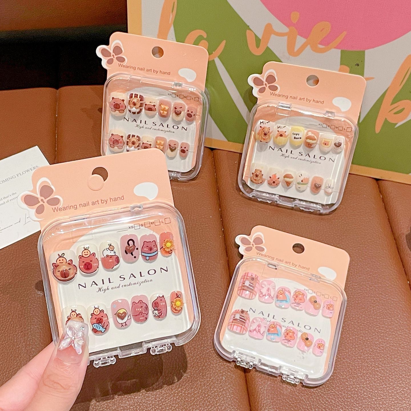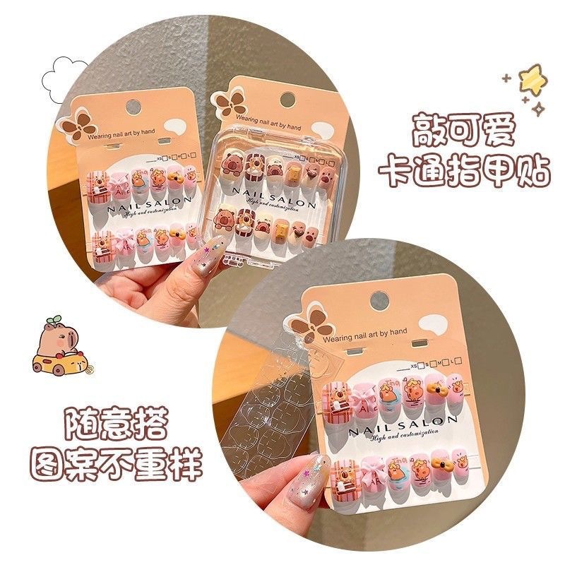 儿童可爱卡皮巴拉穿戴甲女童可拆卸美甲贴女孩不伤手无毒指甲贴