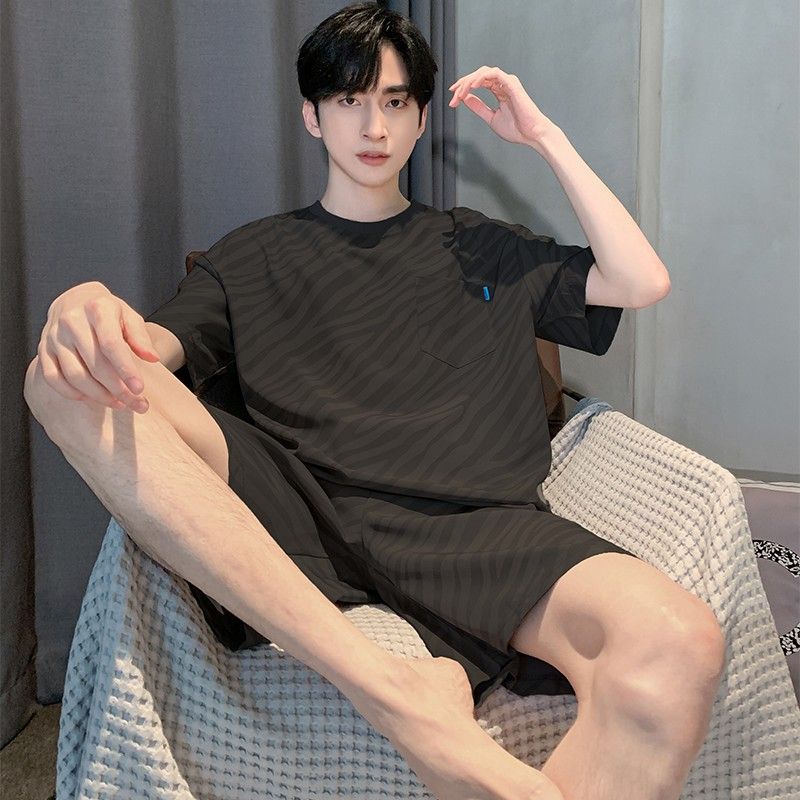 新款男士睡衣夏季莫代尔薄款短袖短裤夏天可外穿家居服套装