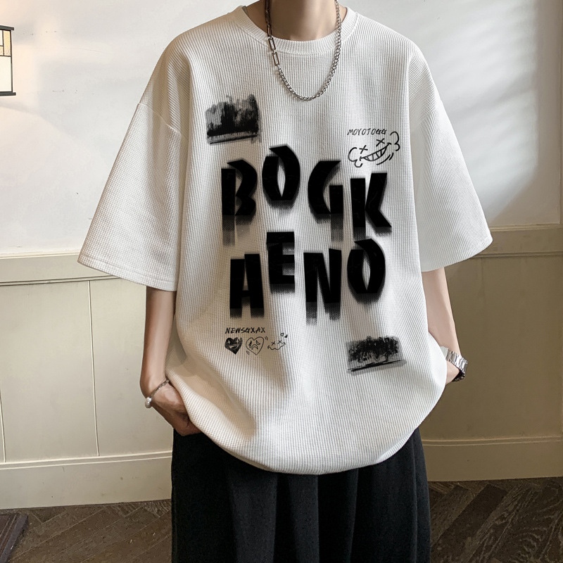 华夫格短袖男潮牌潮流夏季t恤oversize痞帅炸街美式高街重磅衣服