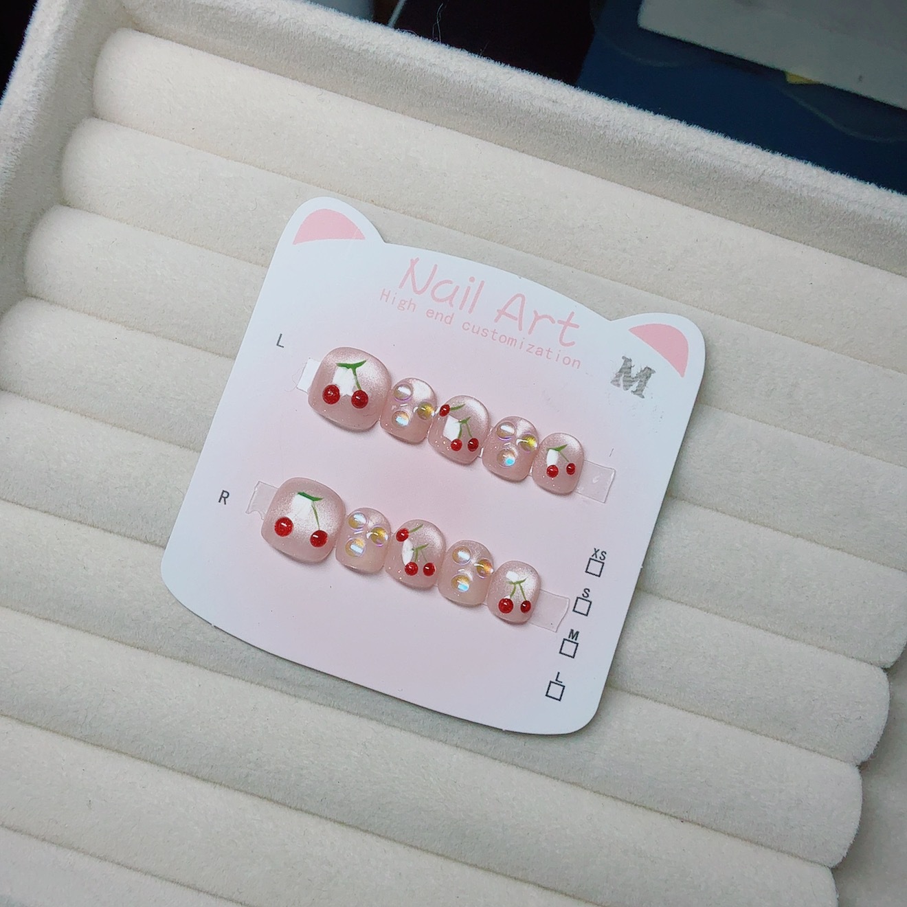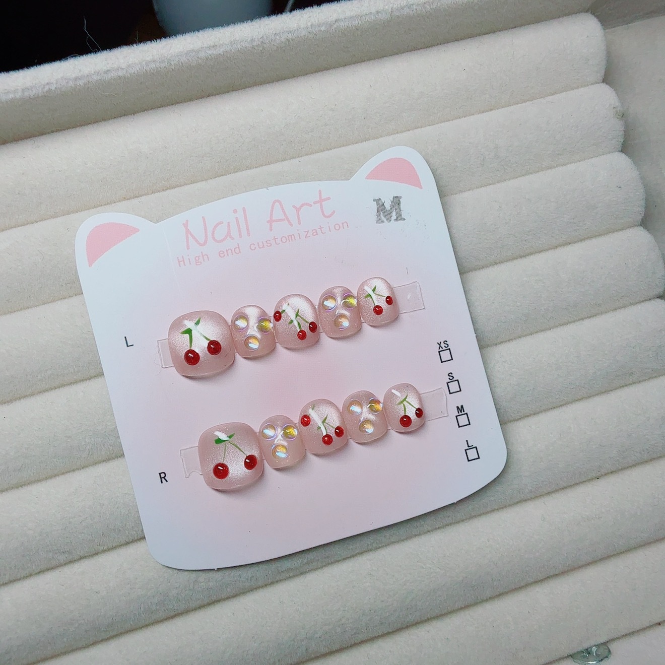 儿童穿戴甲小樱桃美甲贴清新可爱奶油飘带蝴蝶结背胶防水指甲贴