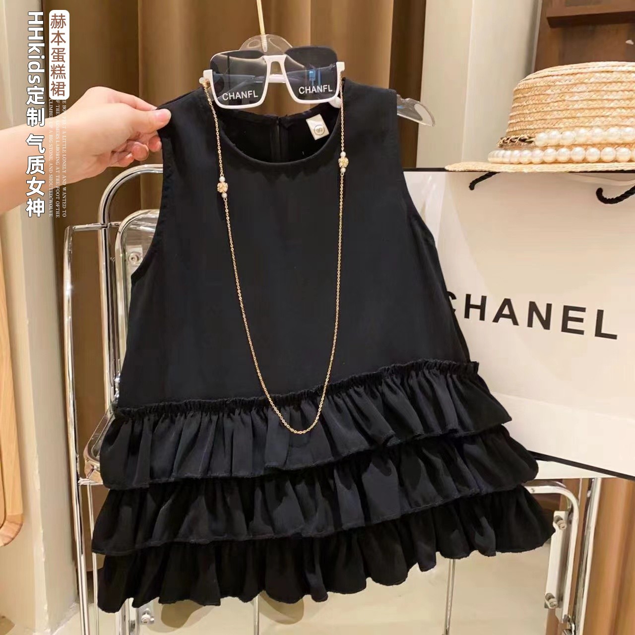 新品赫本风女童花边层叠弹力气质公主背心蛋糕裙2025夏装