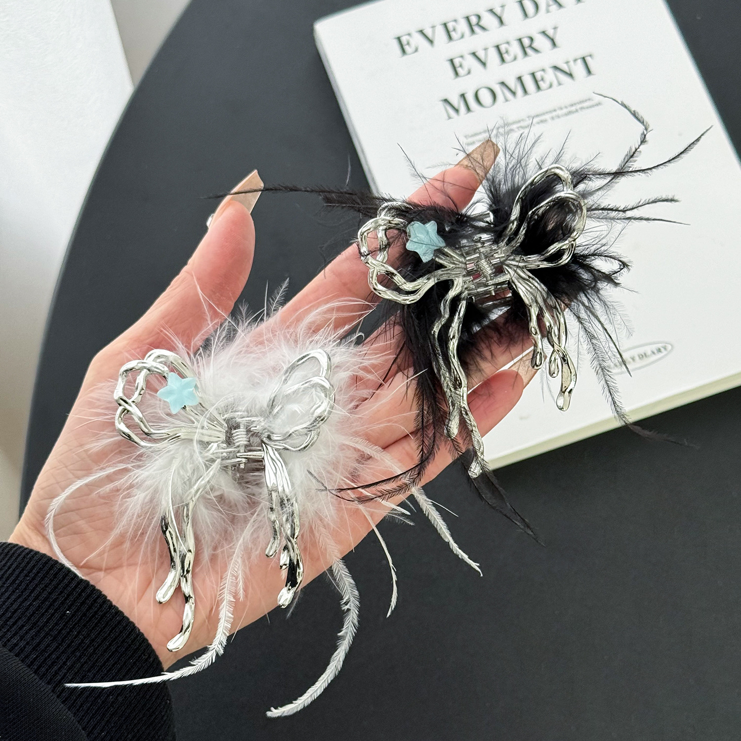 韩版不规则合金蝴蝶结飘带绒毛发夹高级感盘发抓夹饰品