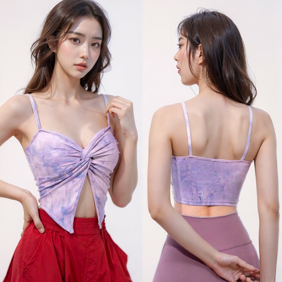 新款扎染背心女运动内衣普拉提蝴蝶扭结美背设计感健身服吊带上衣