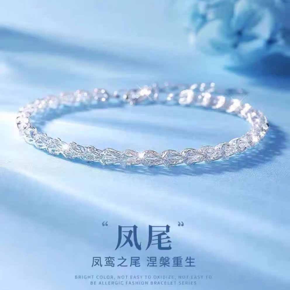 S999银凤尾手链小众设计波光粼粼韩版闺蜜链轻奢高级感满天星手链