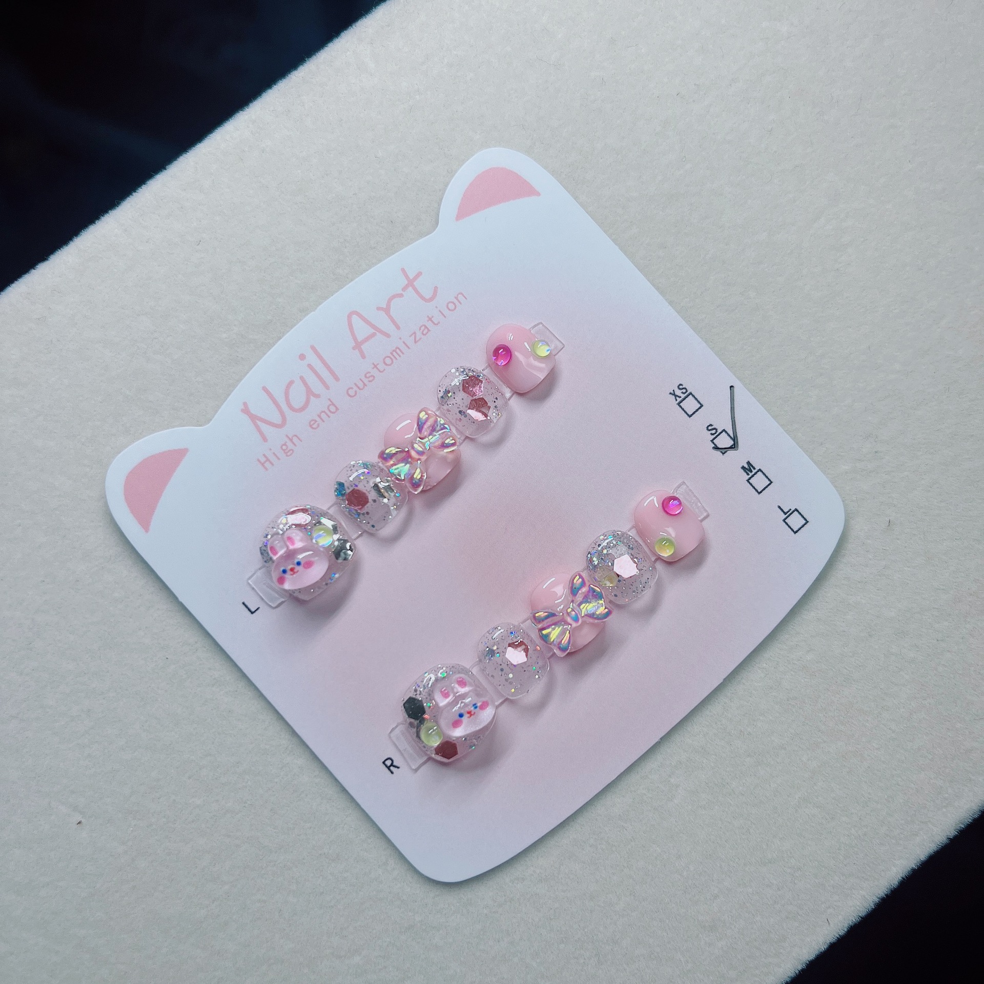 57儿童手工穿戴甲3-8岁闪闪兔穿戴甲可爱美甲反复穿戴夜市摆