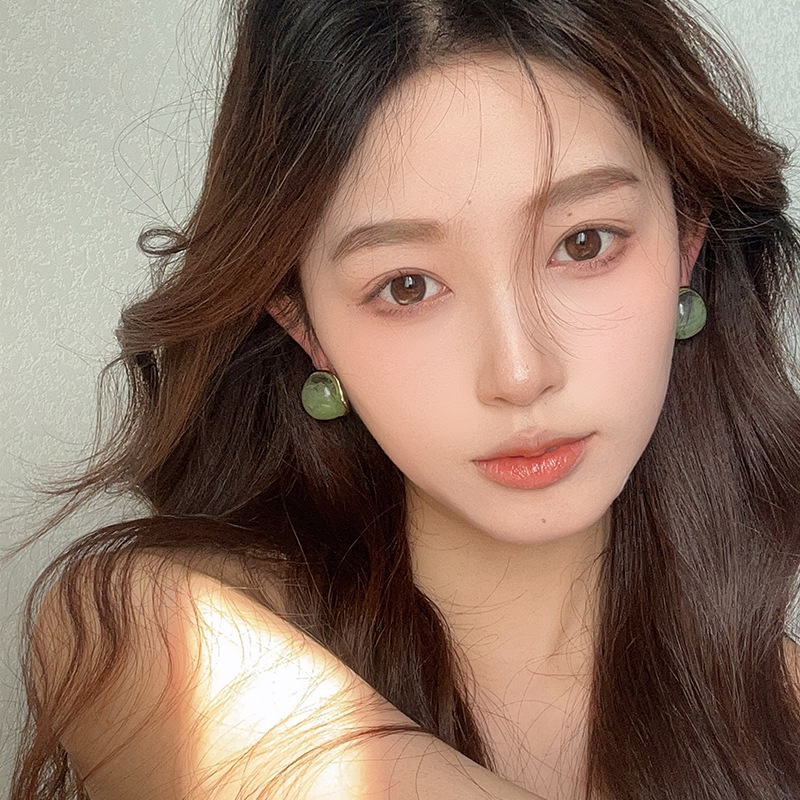 春夏清新绿色树脂耳钉小众设计感椭圆耳环女气质甜美简约百搭耳饰