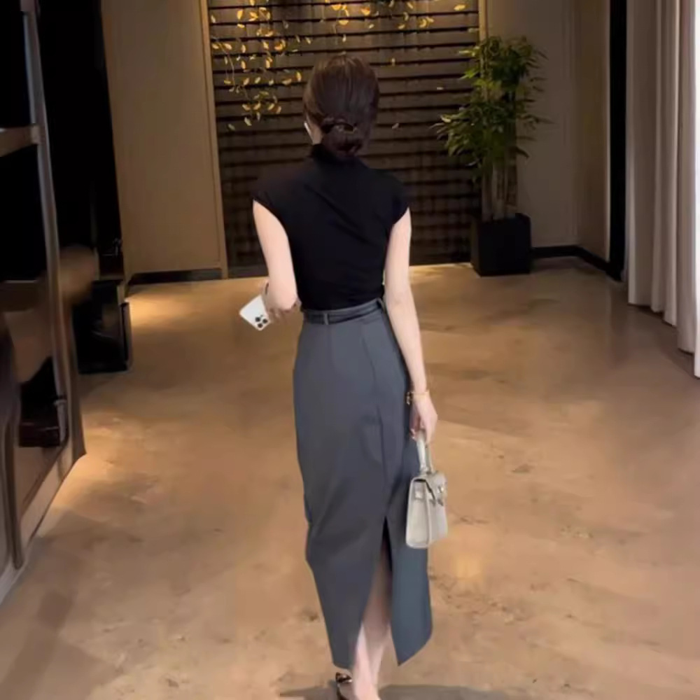 气质通勤御姐风别致两件套夏季温柔淑女高领上衣半身裙套装