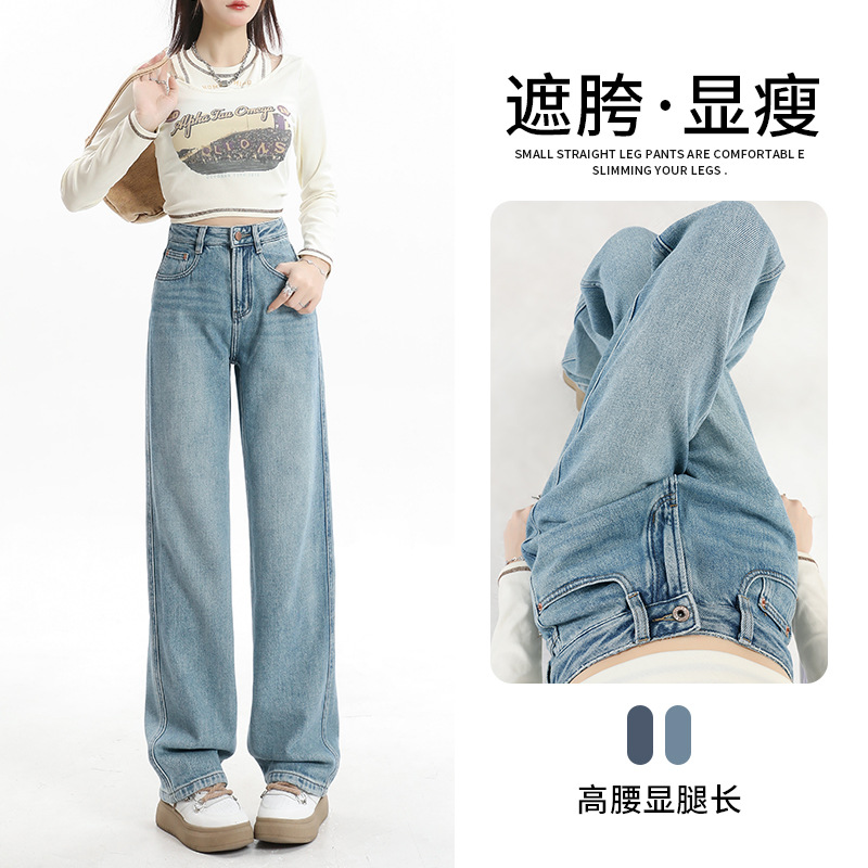 高腰浅蓝牛仔裤女春夏爆款垂感宽松窄版阔腿拖地裤百搭直筒裤
