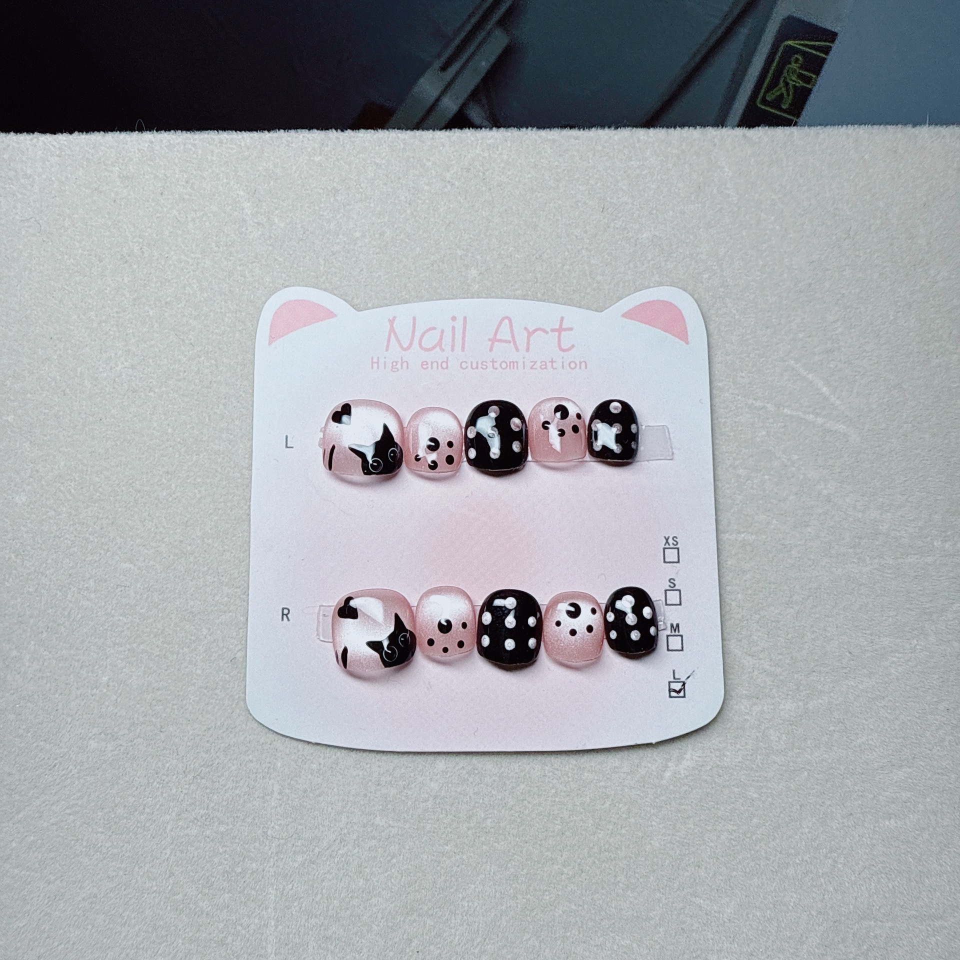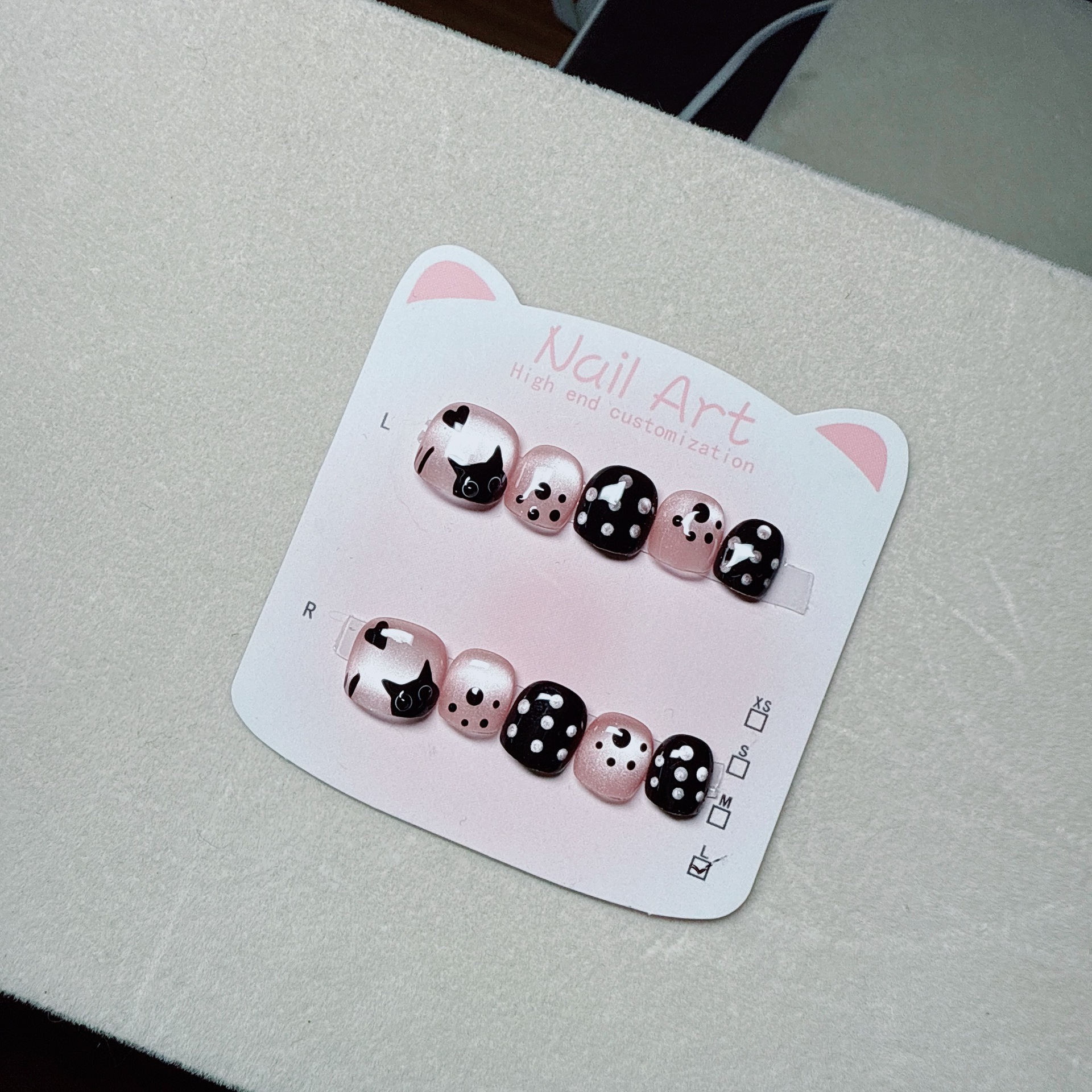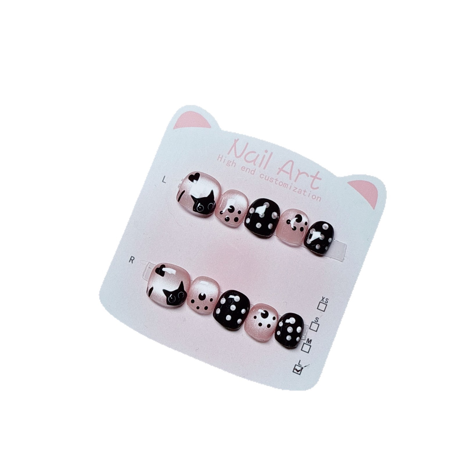 猫咪日记纯手工儿童穿戴甲短款猫眼卡通美甲贴可爱手绘爆闪可拆卸