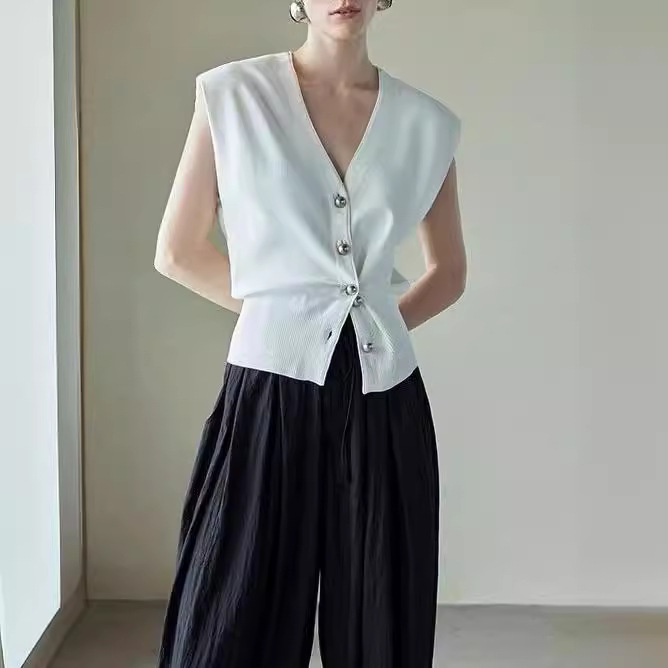 时髦精个性重工Elite设计感V领显瘦针织开衫不对称上衣背心马甲女