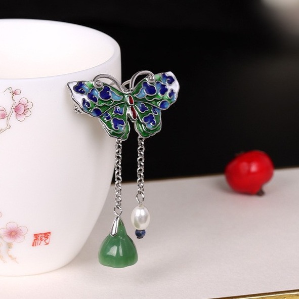 珐琅蝴蝶胸针旗袍压襟胸花别针中式复古古风挂饰花间装饰扣针珍珠