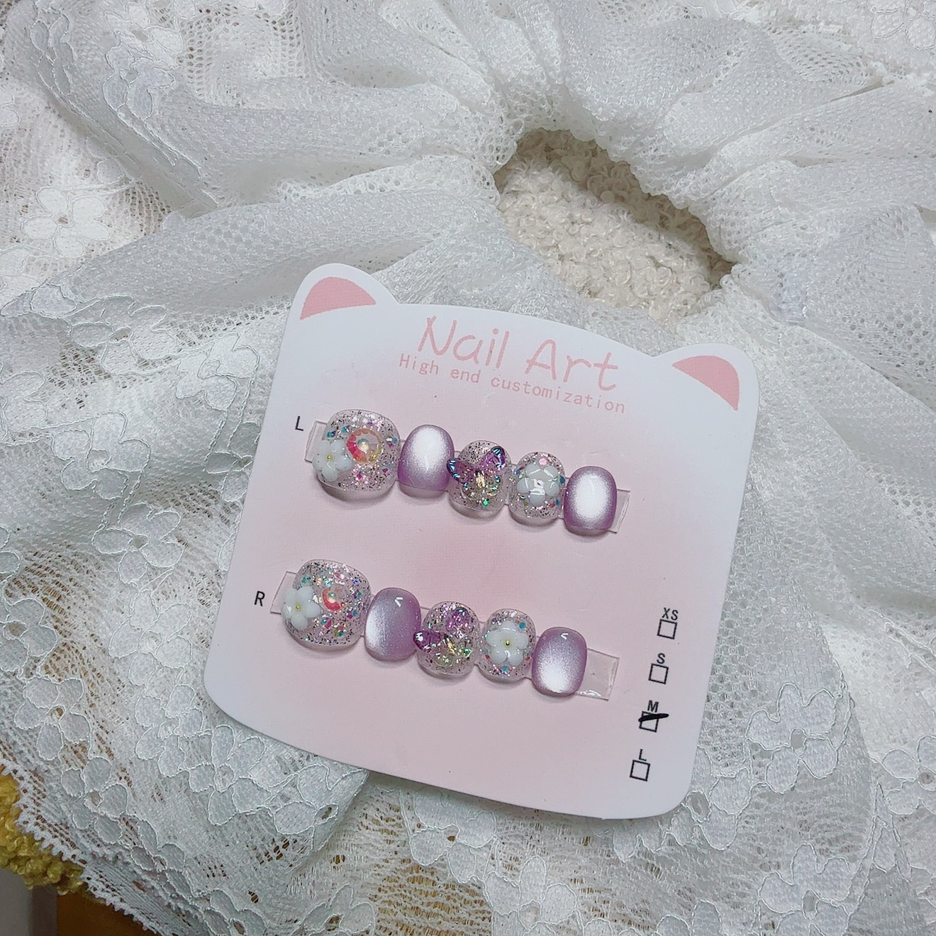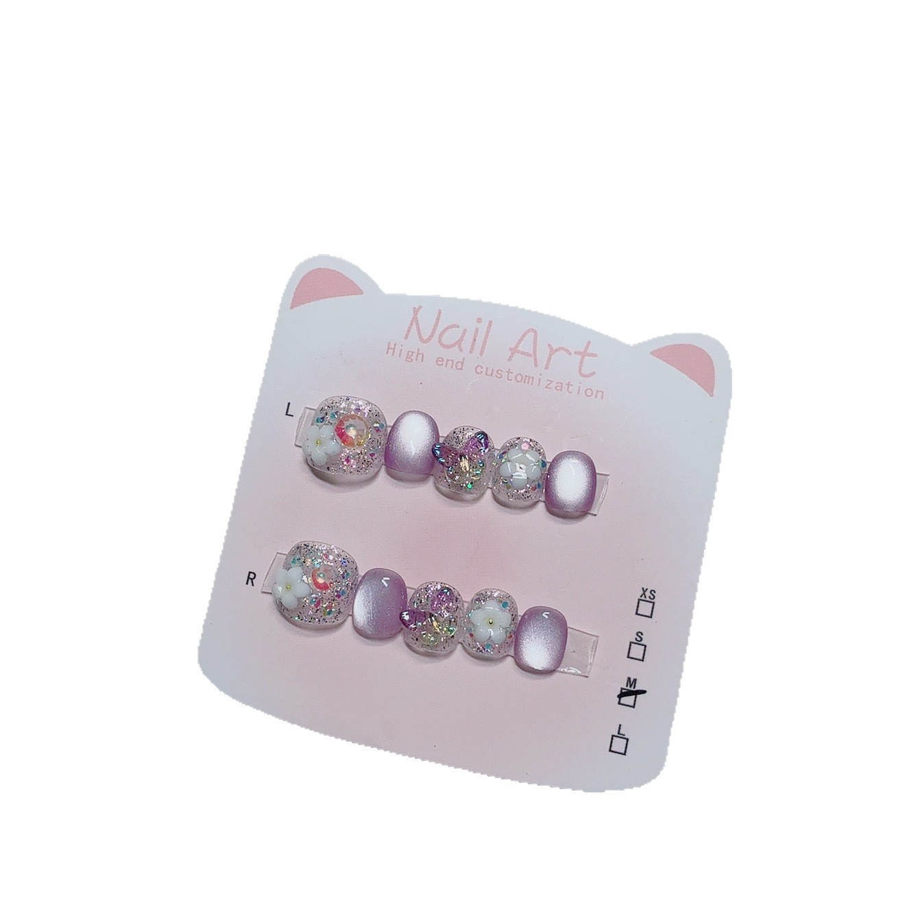 原创儿童手工穿戴甲爆闪透明蝴蝶指甲贴片5-8-10岁女童美甲