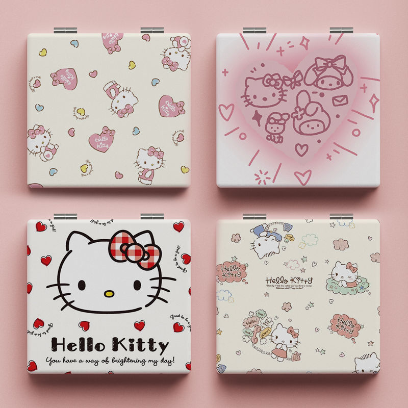 可爱kitty猫便携折叠化妆镜女简约学生宿舍手持随身补妆小镜子diy