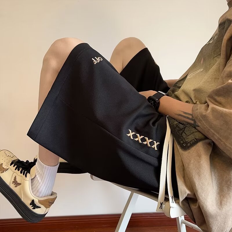 美式潮牌字母刺绣短裤男夏季百搭宽松直筒青少年休闲运动五分裤子
