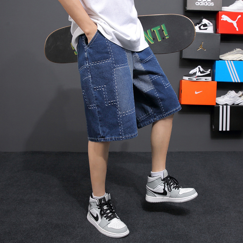 夏季新款潮流抽绳阔腿宽松五分男士牛仔裤大码休闲时尚百搭