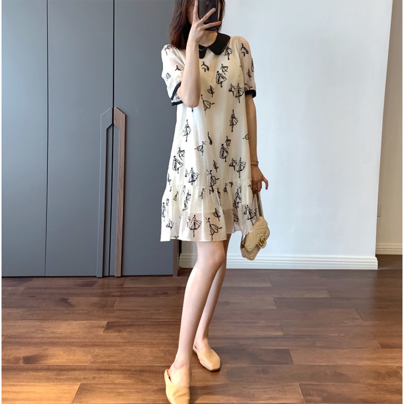 夏季新款气质冷淡风法式复古遮肚小个子裙子显瘦娃娃领连衣裙