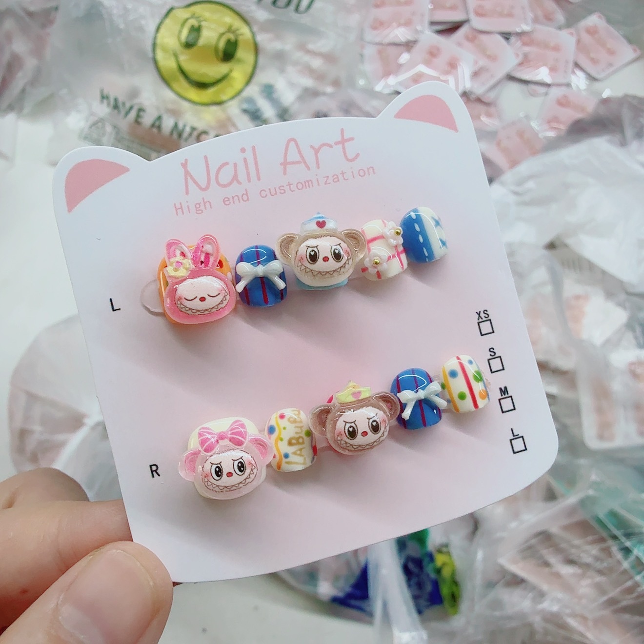 拉布布美甲贴片儿童成人可爱兔子穿戴甲拉布布指甲贴可爱美甲