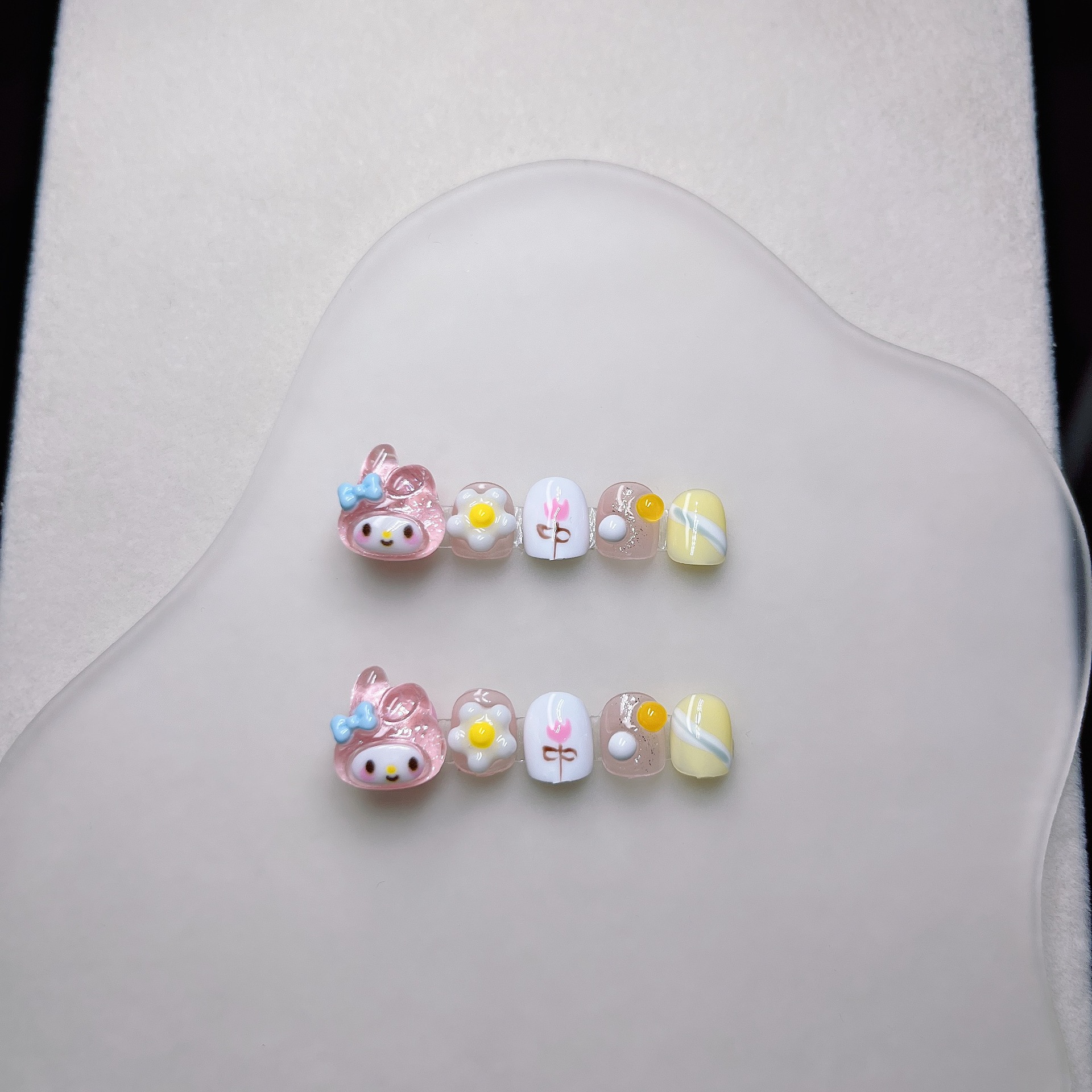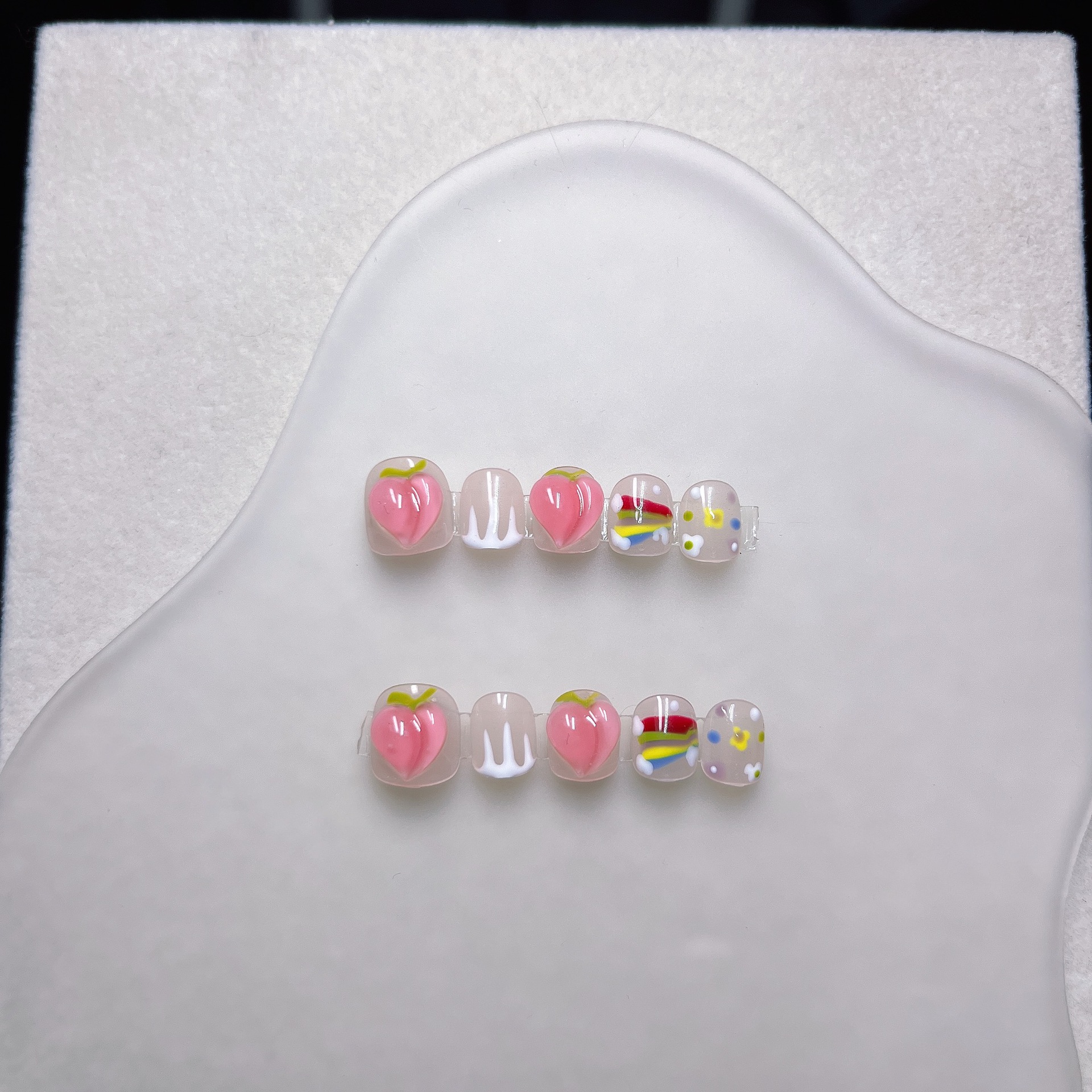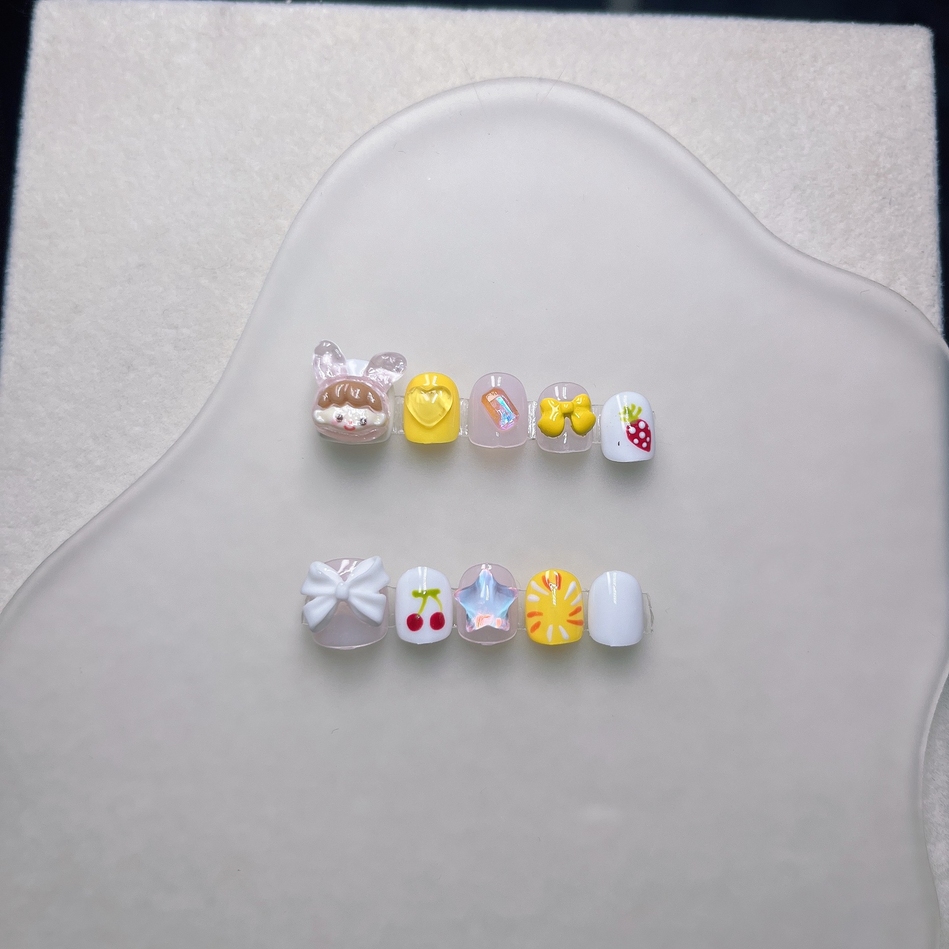 儿童穿戴甲合集琳娜贝儿立体蝴蝶美甲贴女童短款卡通穿戴甲供应