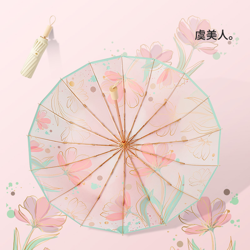 新款三折16骨金杆复合彩胶遮阳伞防晒防紫外线复古晴雨两用太阳伞