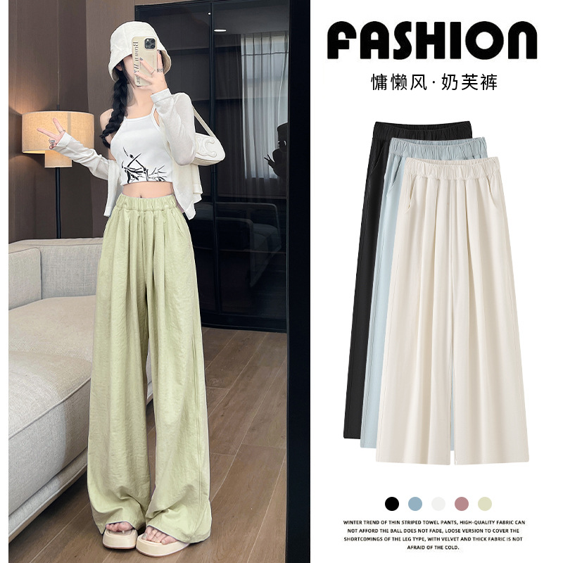 肌理感奶芙裤女裤夏天女裤子新款垂感慵懒风阔腿裤直筒女装山本裤