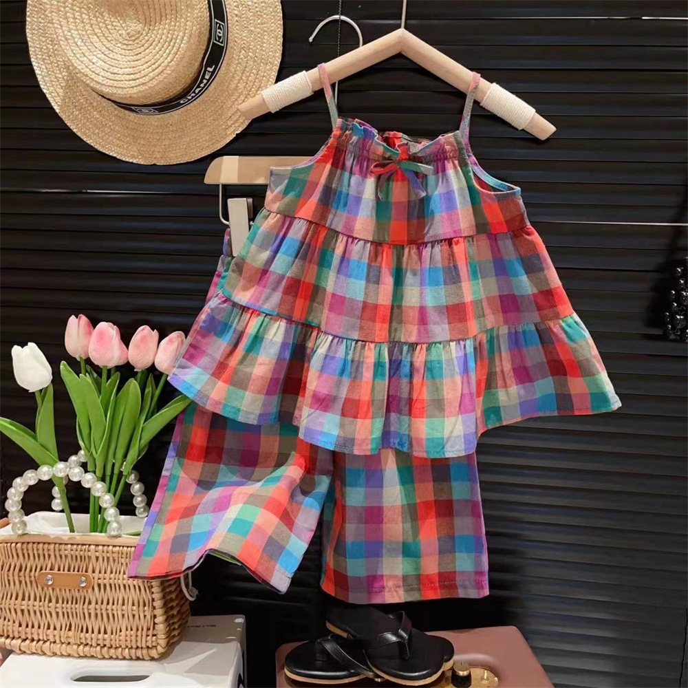 新品蝴蝶结吊带娃娃衫阔腿裤两件套2025夏装背心时髦中小童套装