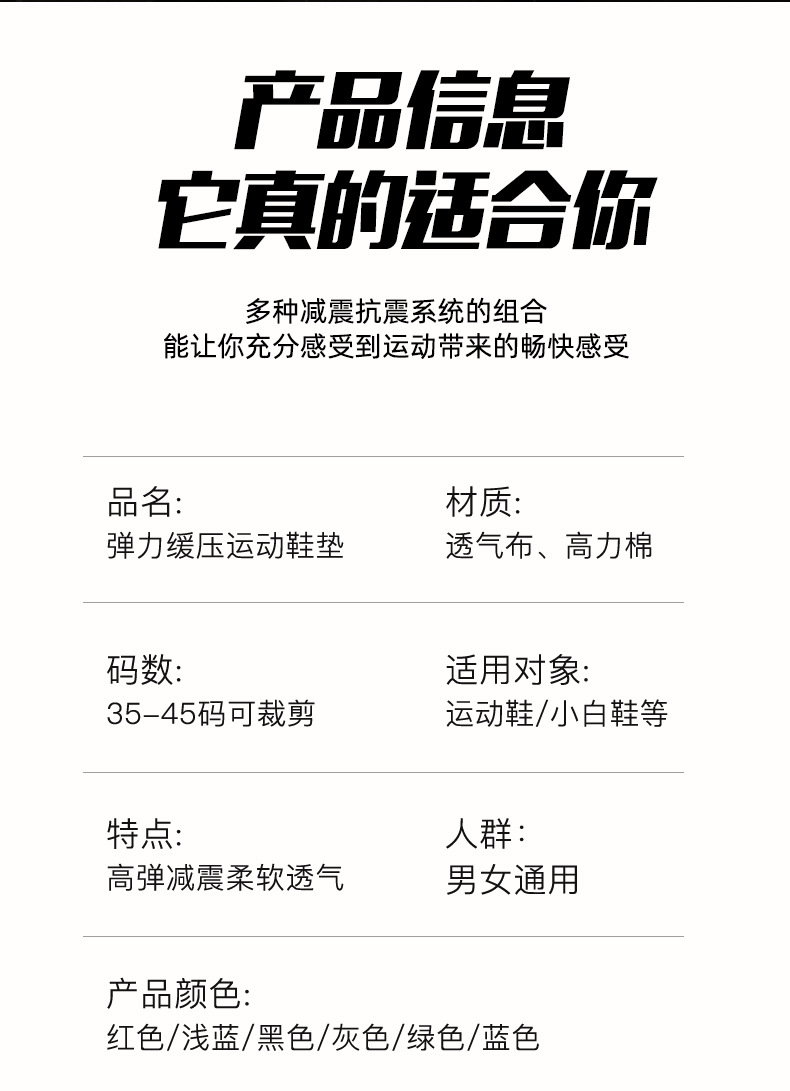 运动防臭吸汗透气软弹减震防滑除臭跑步弹力缓震篮球鞋垫