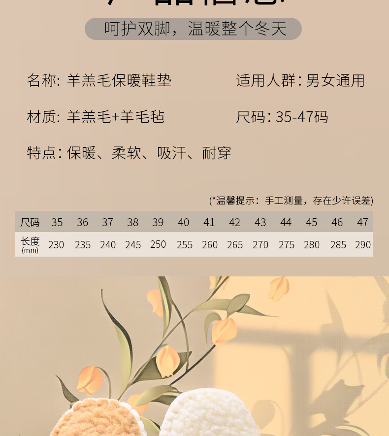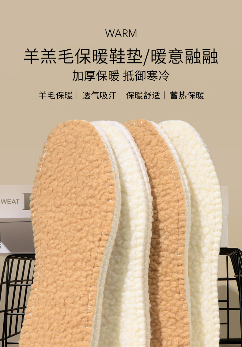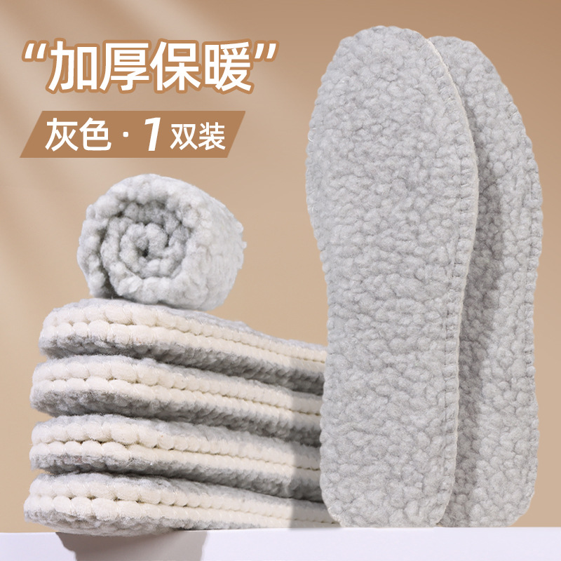 保暖鞋垫秋冬季加绒加厚男女款雪地靴羊毛吸汗防臭皮毛一体棉鞋垫