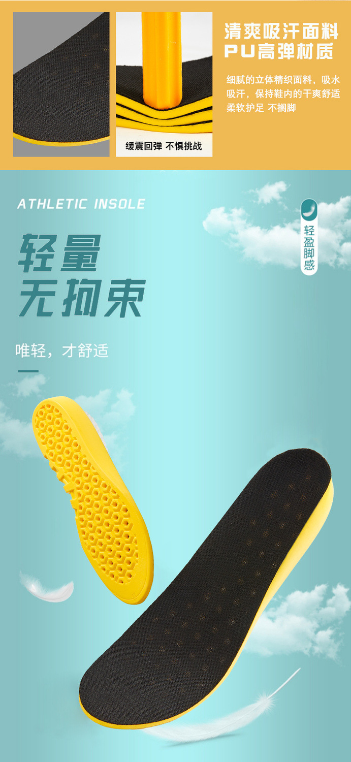 运动鞋垫透气吸汗耐磨久站不累踩屎感军训专用吸汗透气鞋垫