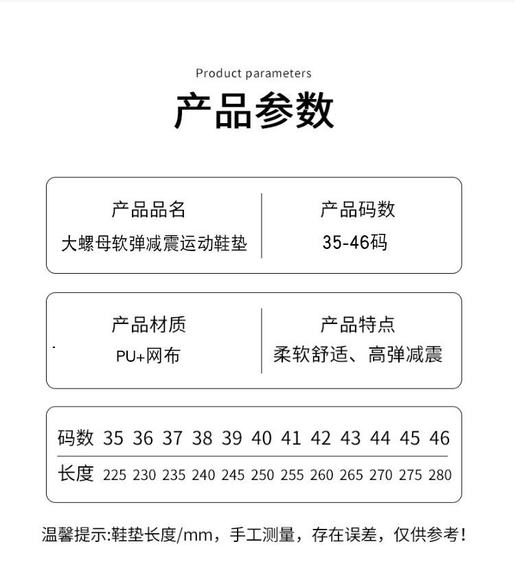 踩屎感大螺母运动鞋垫加厚夏季男士军训吸汗减震篮球软底鞋垫