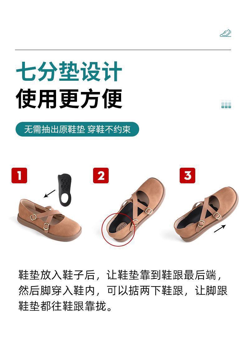 高跟鞋硅胶麂皮足弓七分垫加厚足弓支撑鞋垫柔软防滑隐形半码垫