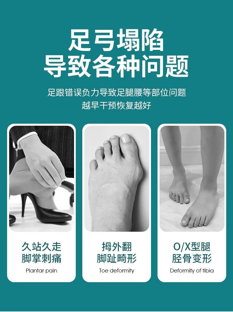 足弓半垫扁平足鞋垫成人足跟外翻改善足弓塌陷平足XO型腿调整鞋垫