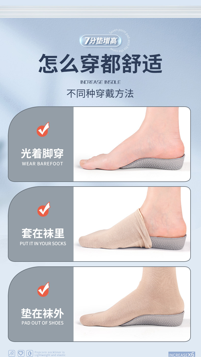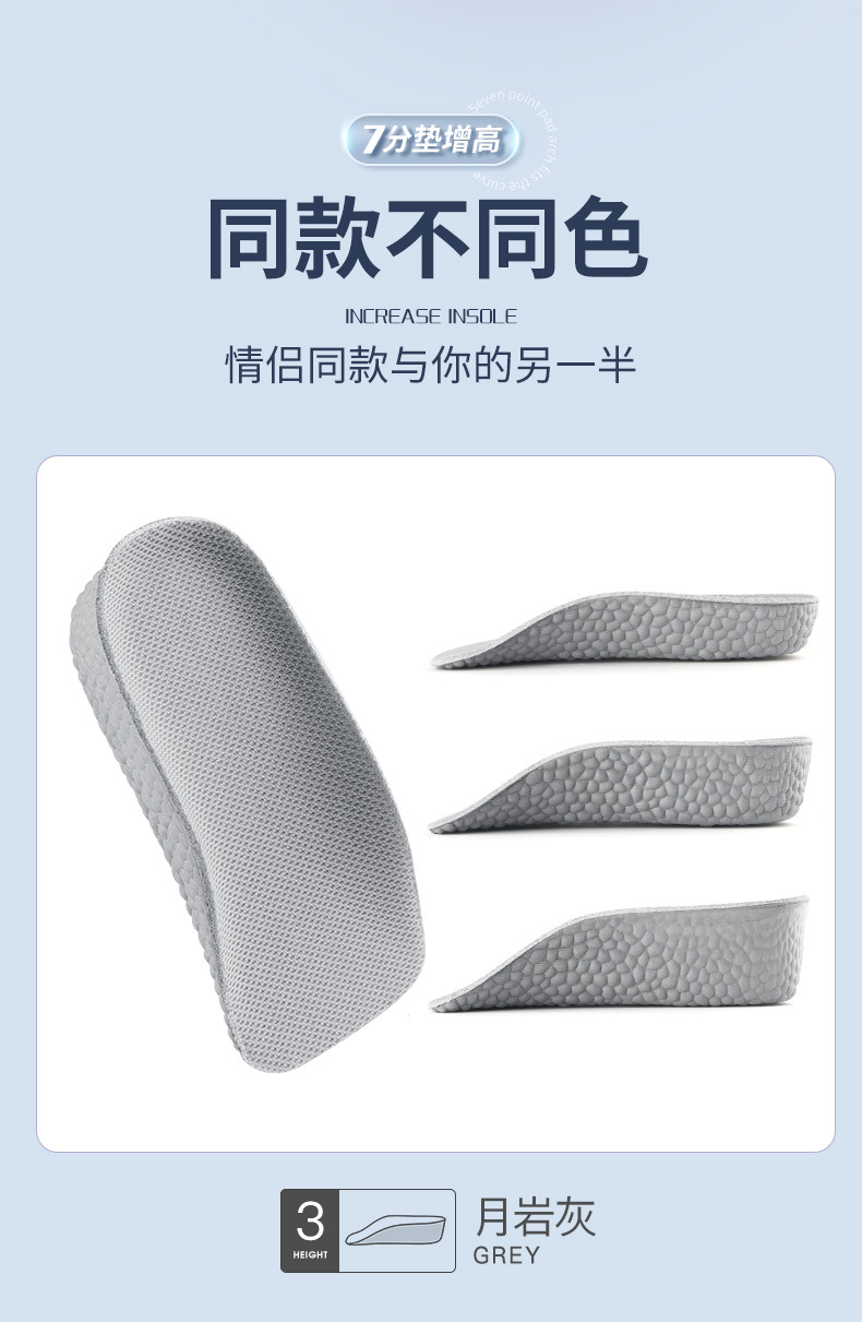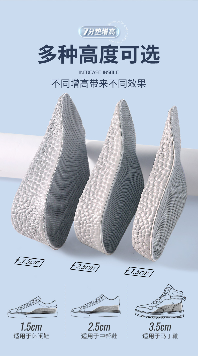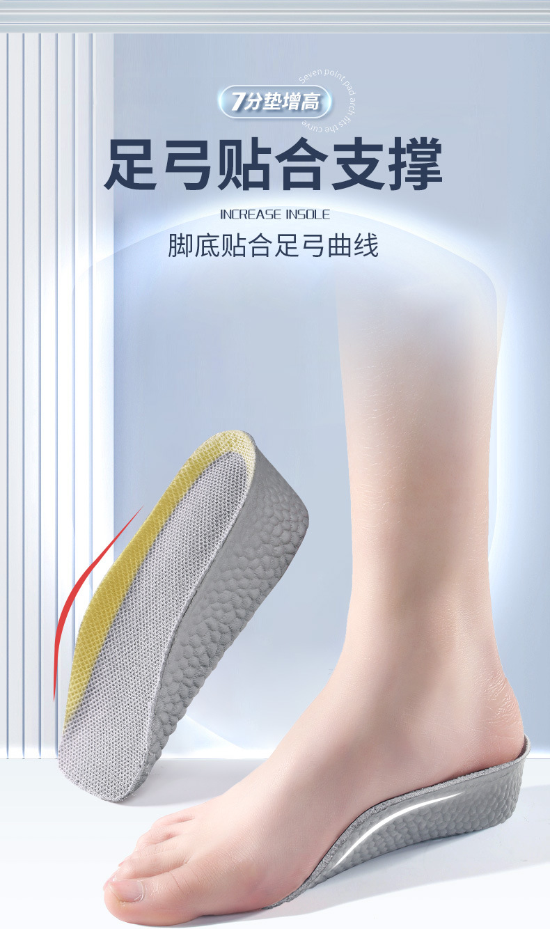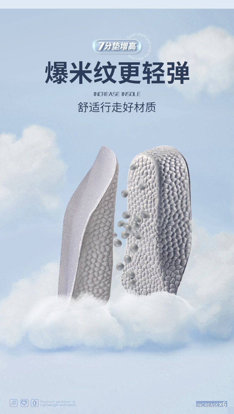足弓内增高鞋垫男隐形增高垫软底boost爆米花舒适运动增高鞋垫女