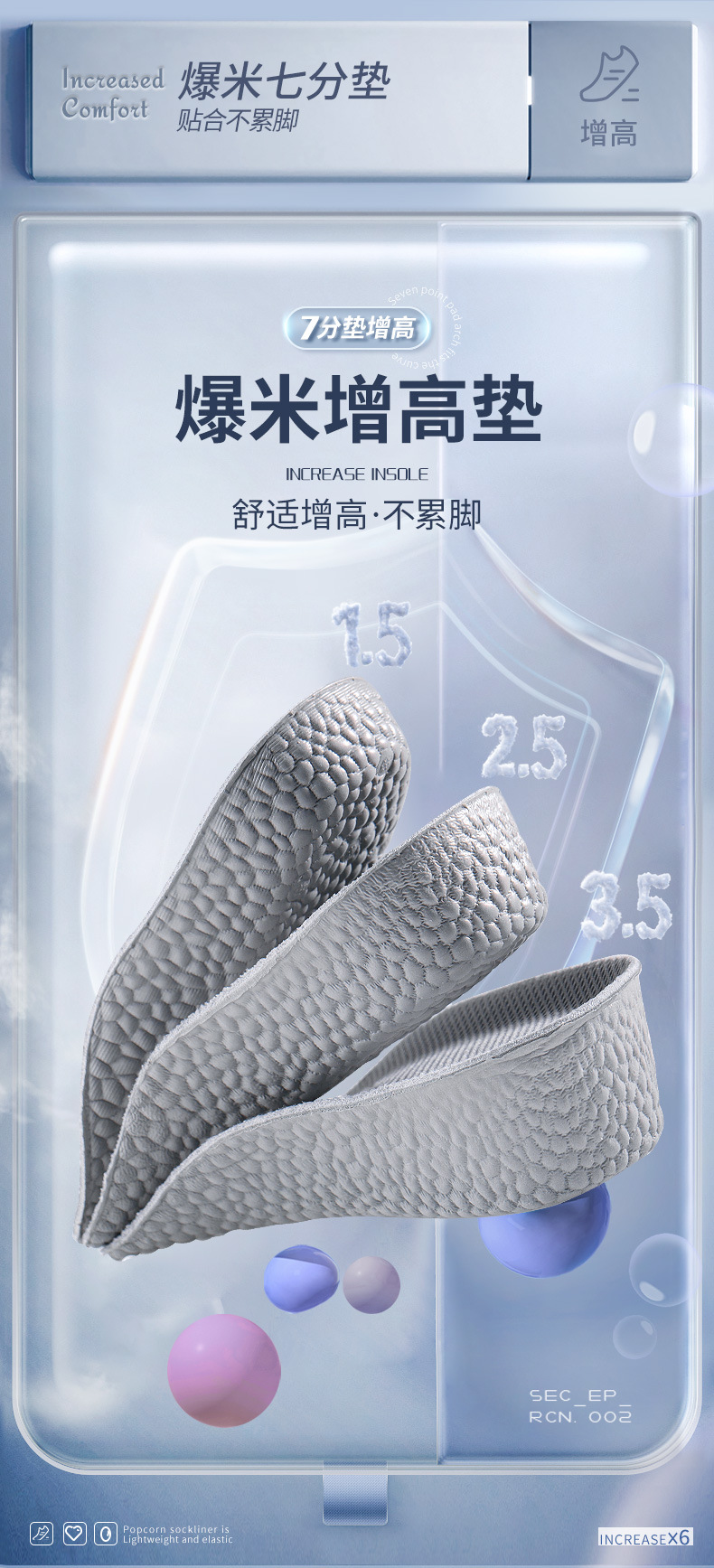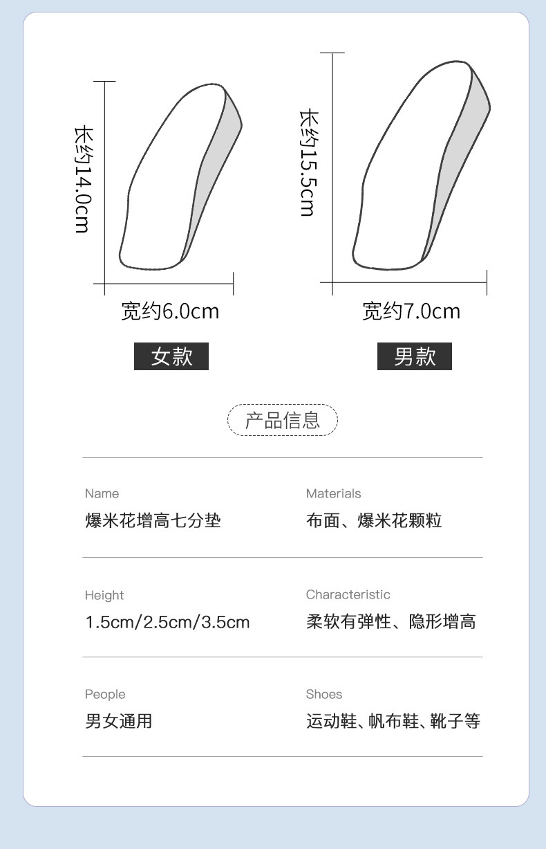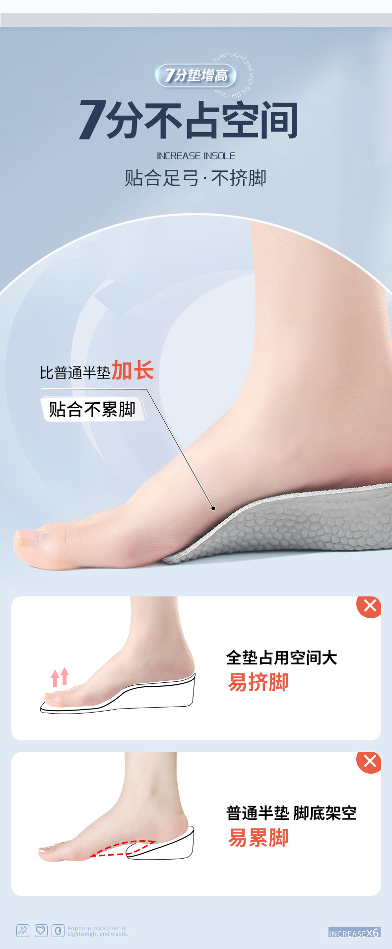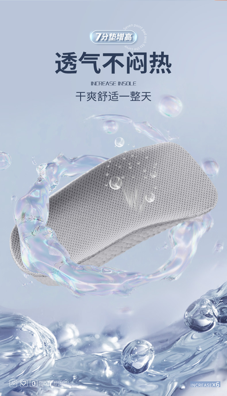足弓内增高鞋垫男隐形增高垫软底boost爆米花舒适运动增高鞋垫女