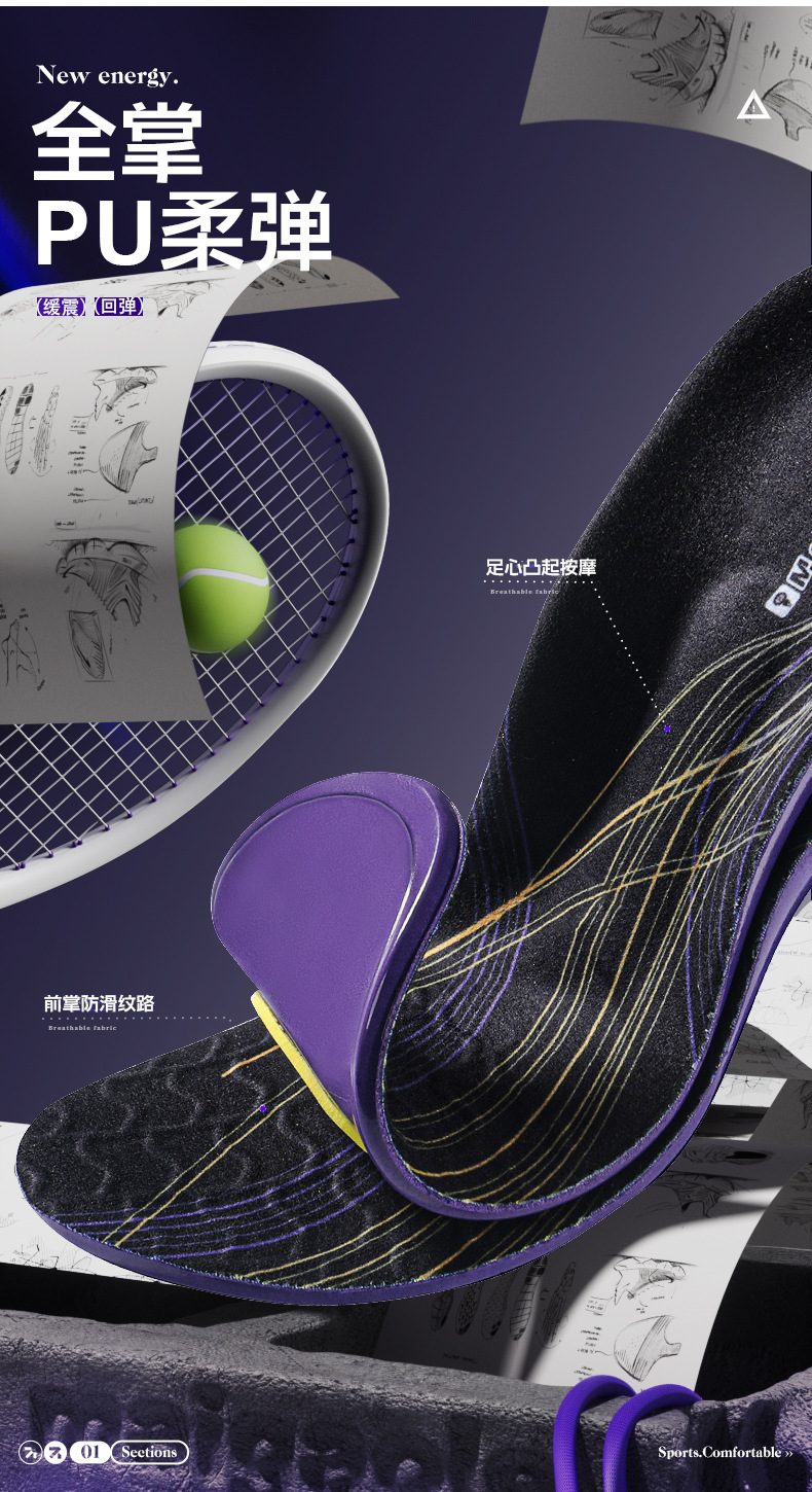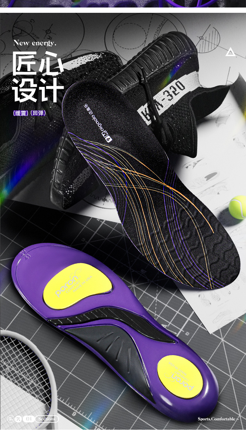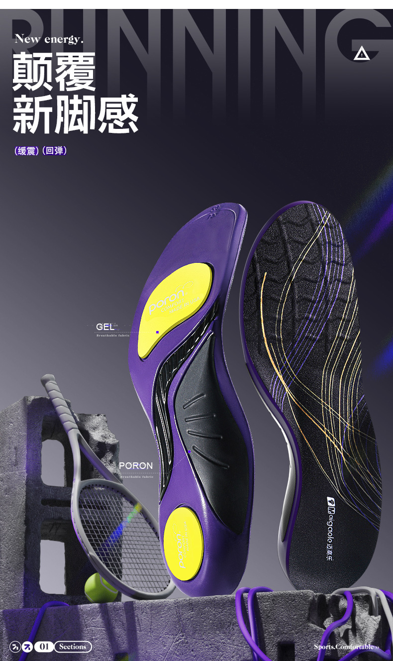 踩屎感久站不累足弓支撑垫篮球专用poron减震运动鞋垫软底男款女