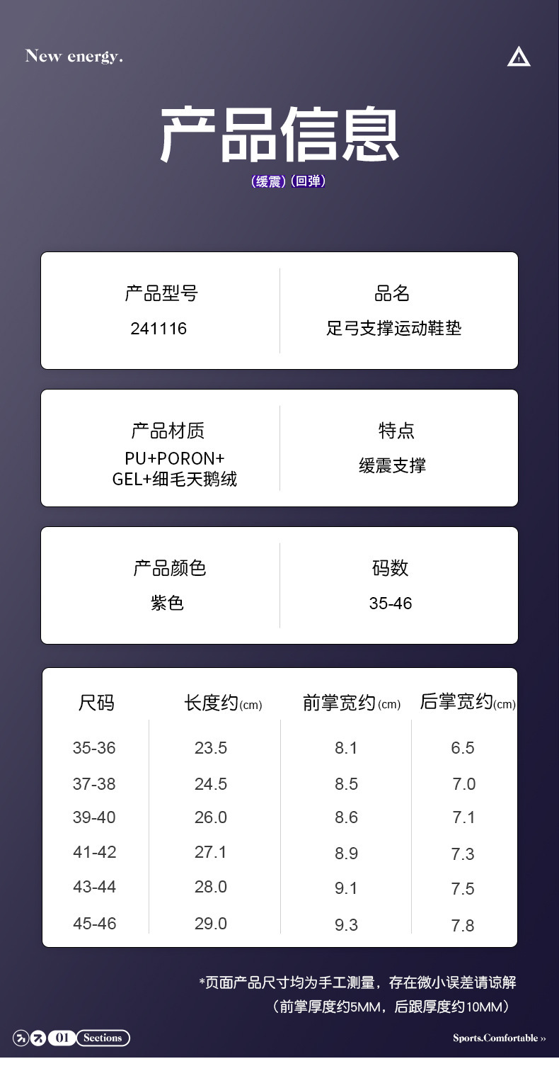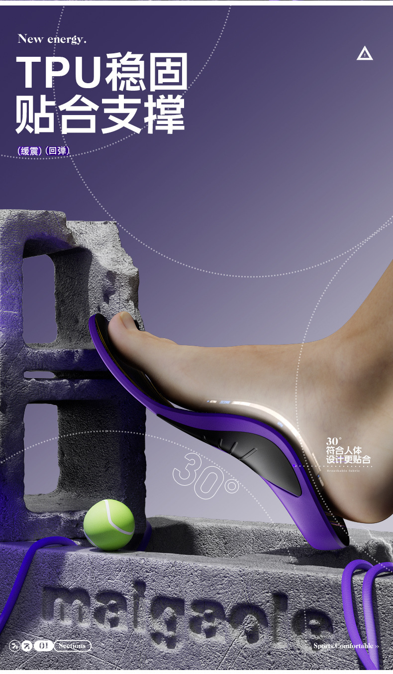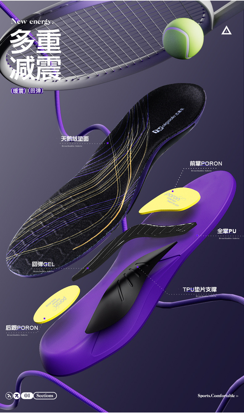 踩屎感久站不累足弓支撑垫篮球专用poron减震运动鞋垫软底男款女