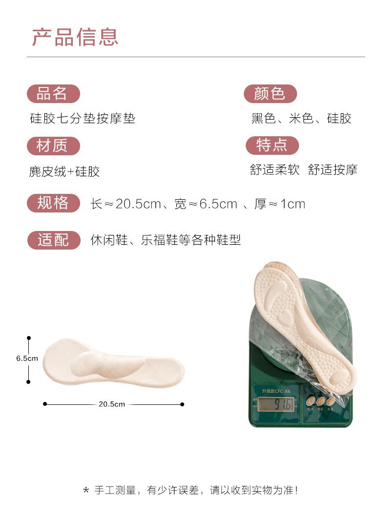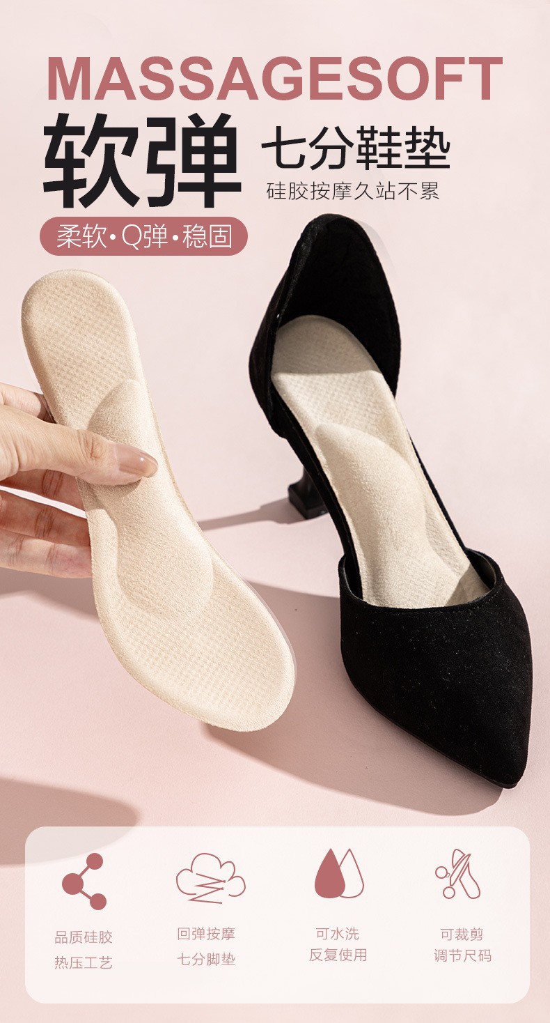 高跟鞋硅胶麂皮足弓七分垫加厚足弓支撑鞋垫柔软防滑隐形半码垫