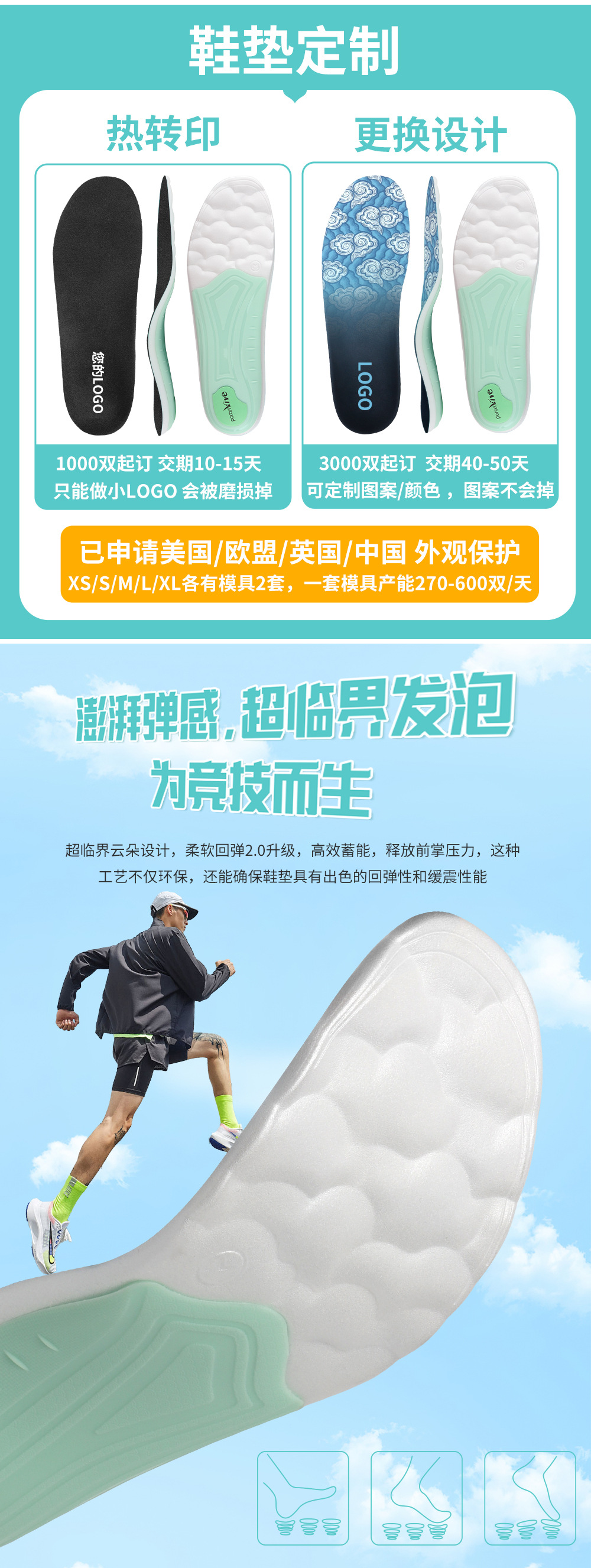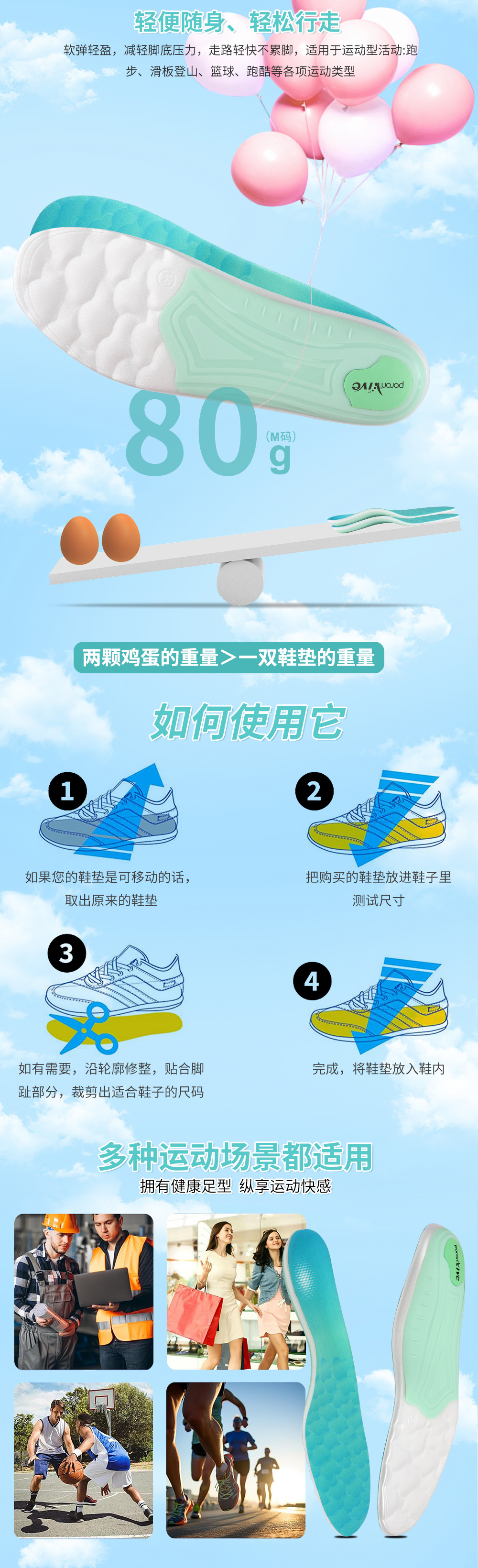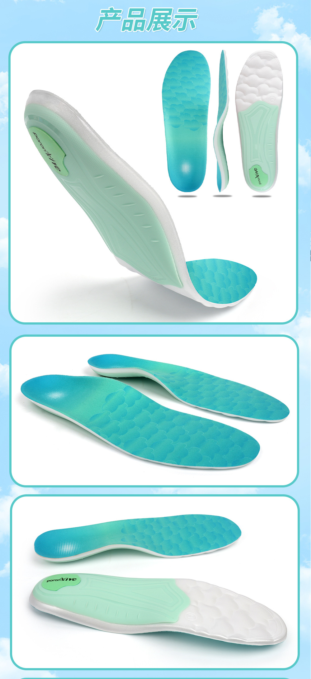 软底缓压透气超临界poron轻便舒适足弓支撑鞋垫男士女士矫正鞋垫