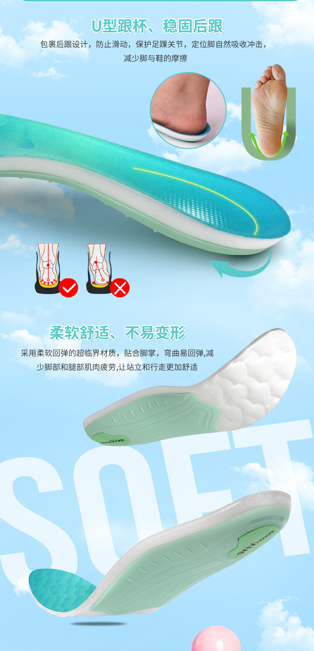 扁平足矫正足弓支撑鞋垫高弹减震抗扭运动鞋垫足底增高吸汗透气夏