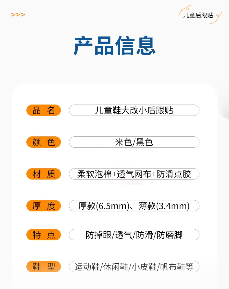 儿童后跟贴宝宝防掉跟鞋大改小半码鞋垫调节鞋码缩码防磨脚贴