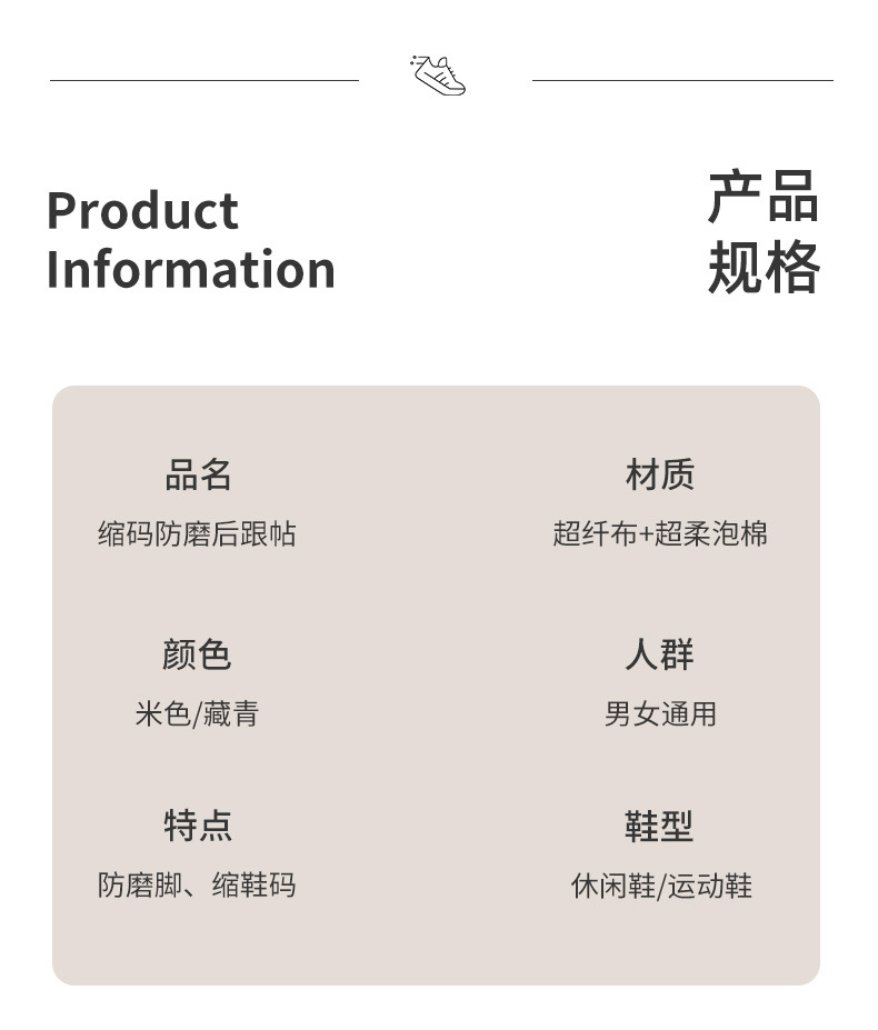 小白鞋后跟贴男女鞋大改小防掉跟防磨神器鞋贴调鞋码半码垫薄款