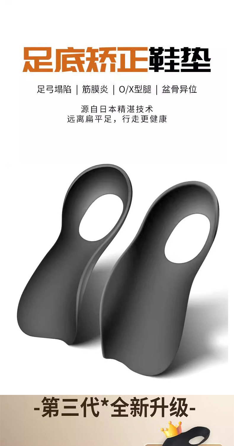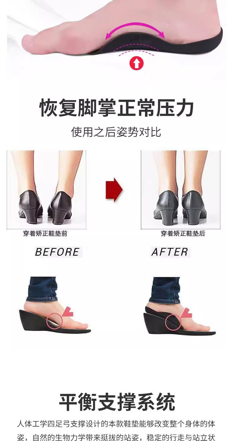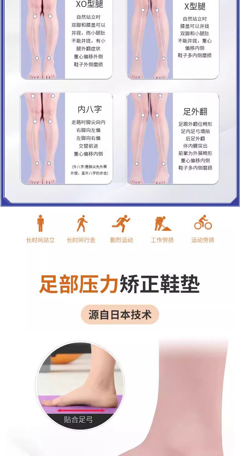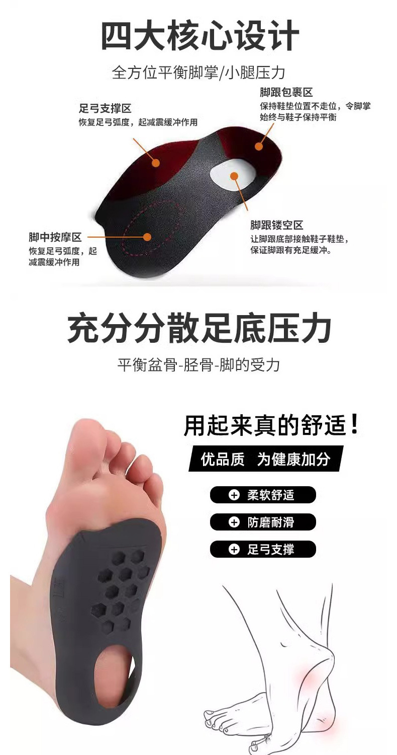 夏季扁平足足弓支撑后跟贴矫正内八字外翻平底鞋垫腿型适足弓矫正