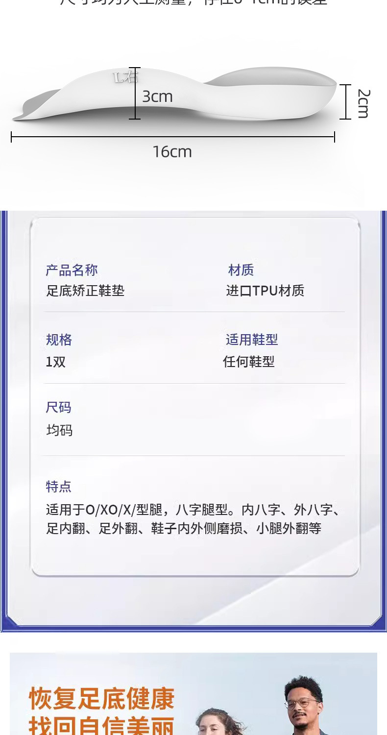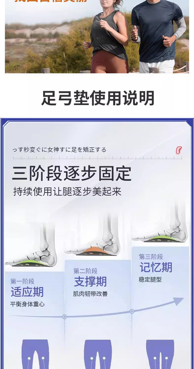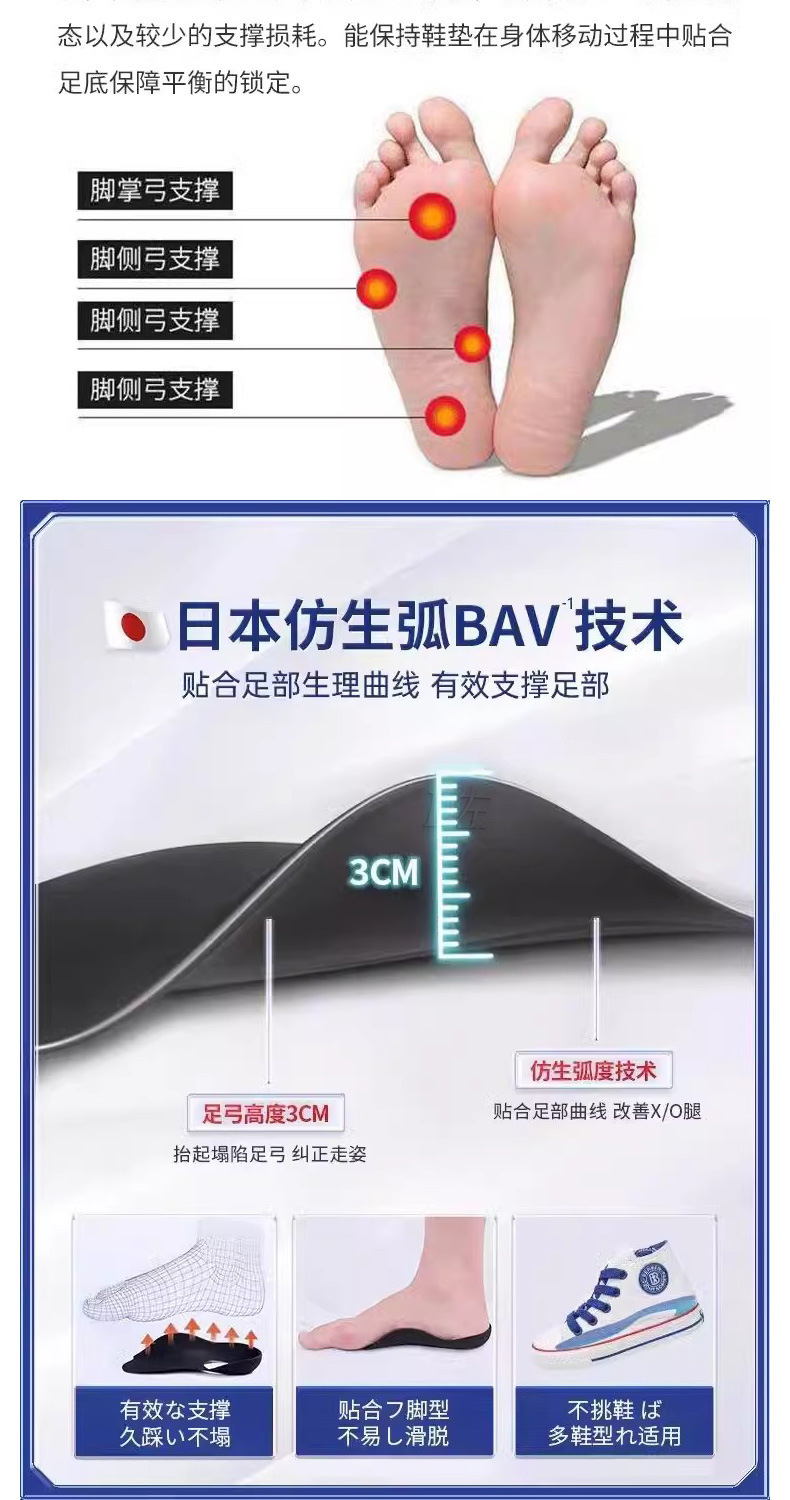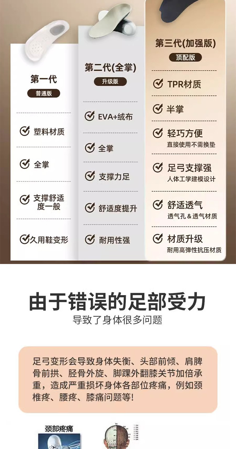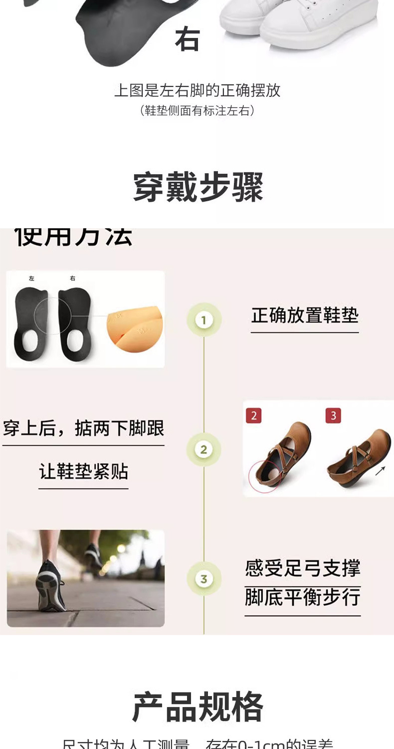 夏季扁平足足弓支撑后跟贴矫正内八字外翻平底鞋垫腿型适足弓矫正