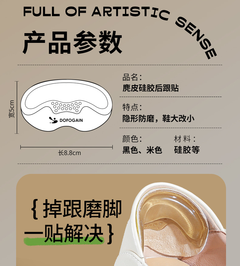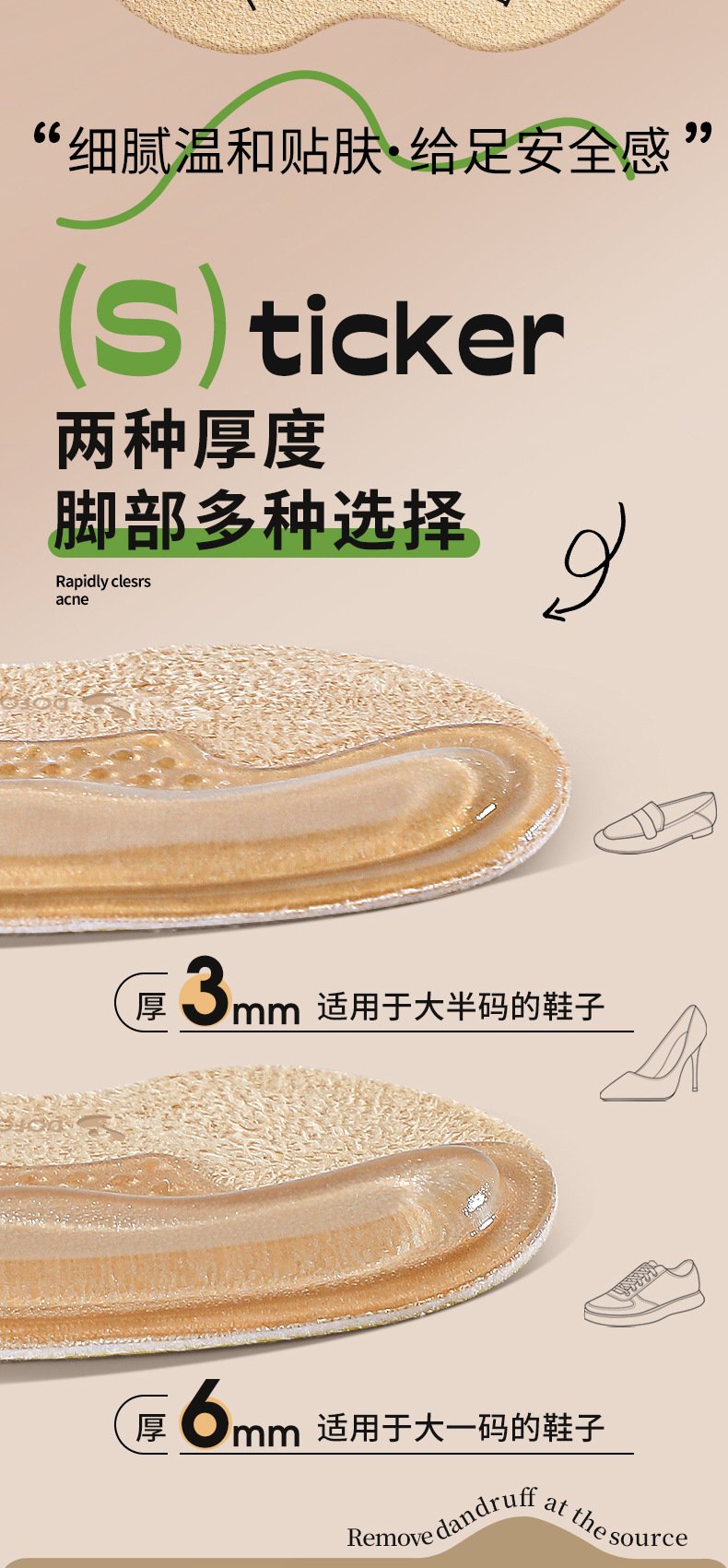 4D硅胶后跟贴高跟鞋防掉跟防磨脚鞋大改小神器乐福鞋军训鞋半码垫